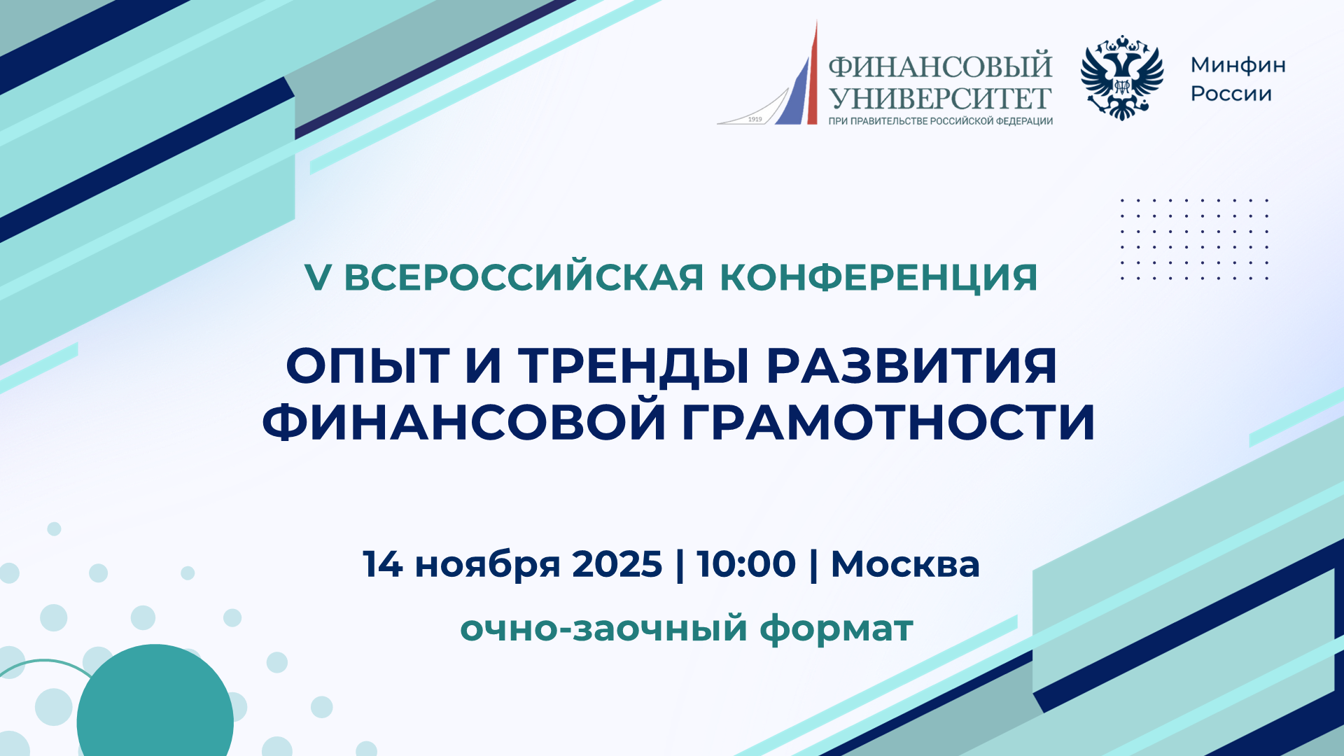 14 ноября 2025 года Финансовый университет проводит итоговую федеральную сессию V Всероссийской конференции «Опыт и тренды развития финансовой грамотности». Организатор мероприятия – Институт финансовой грамотности Финансового университета, соорганизаторы – Министерство финансов РФ, Банк России, НИФИ Минфина России.