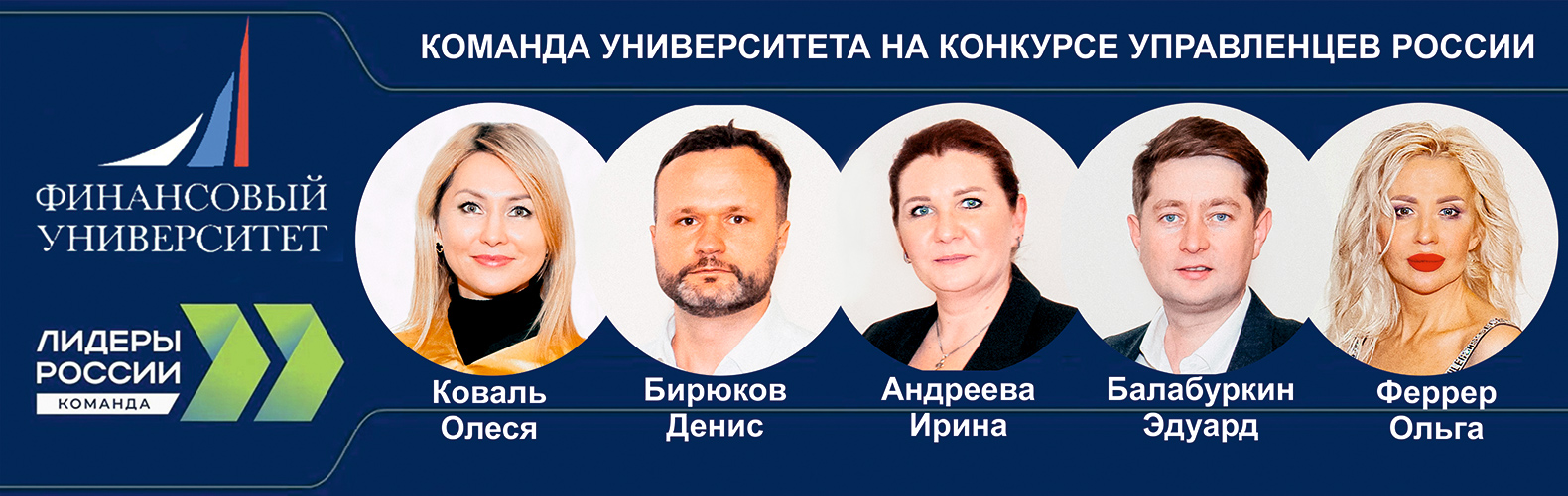 В флагманском проекте президентской платформы «Россия – страна возможностей» — конкурсе «Лидеры России» — Финансовый университет представляют наши выпускники: Ирина Андреева, Эдуард Балабуркин, Олеся Коваль, Денис Бирюков и Ольга Феррер.