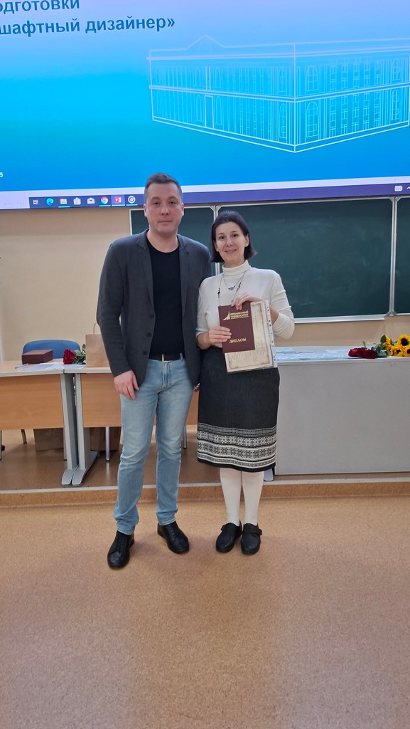 Дипломы слушателям вручили: Решетова Маргарита Владимировна — кандидат искусствоведения, доцент кафедры рекламы, связи с общественностью и дизайна РЭУ им. Г. В. Плеханова; Федосова Валерия Анатольевна — доцент кафедры ландшафтной архитектуры ГУЗ, член «Союза московских архитекторов», руководитель и ведущий ландшафтный архитектор ООО «Формула сада»; Кравцов Александр Викторович — директор Высшей школы логистики.