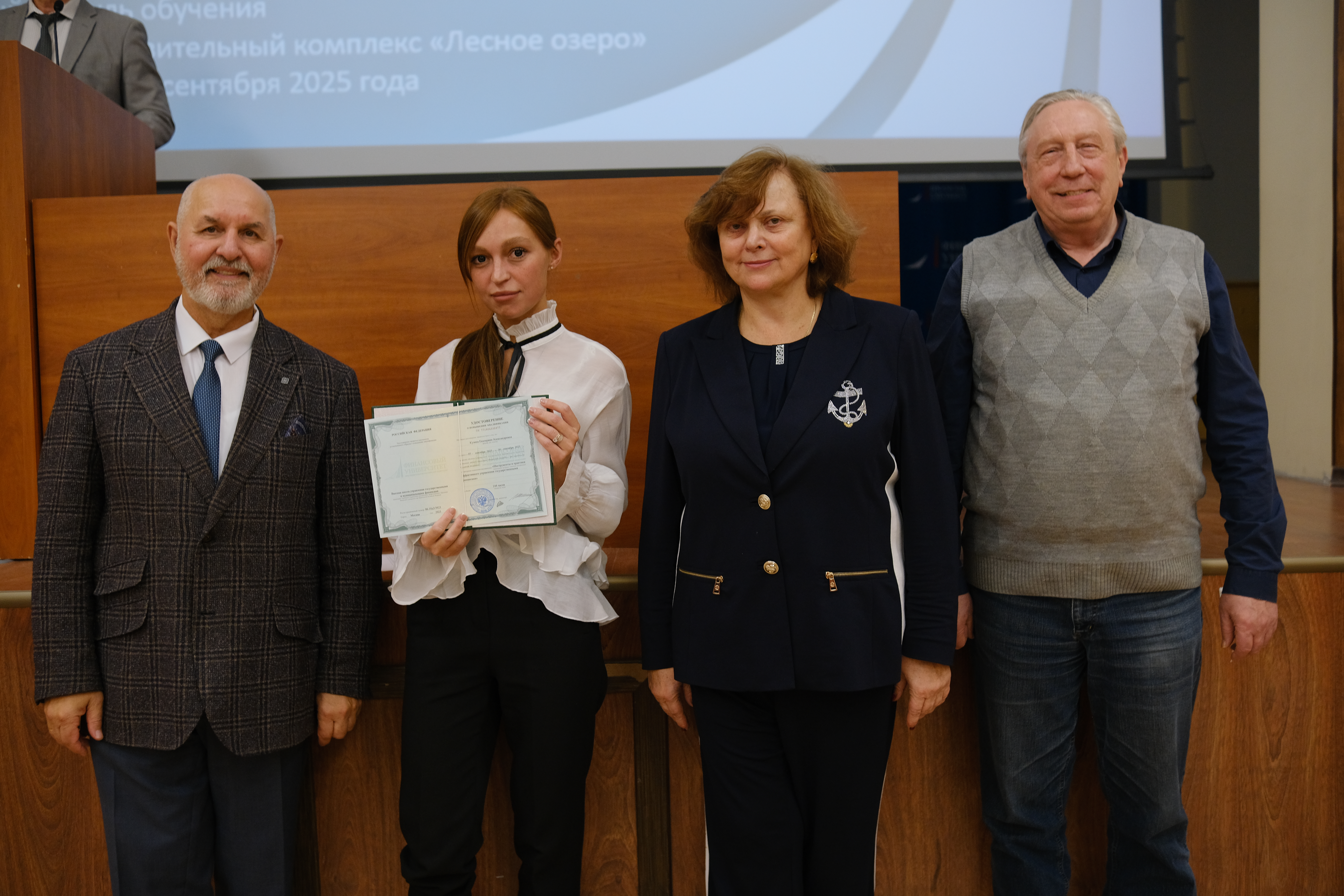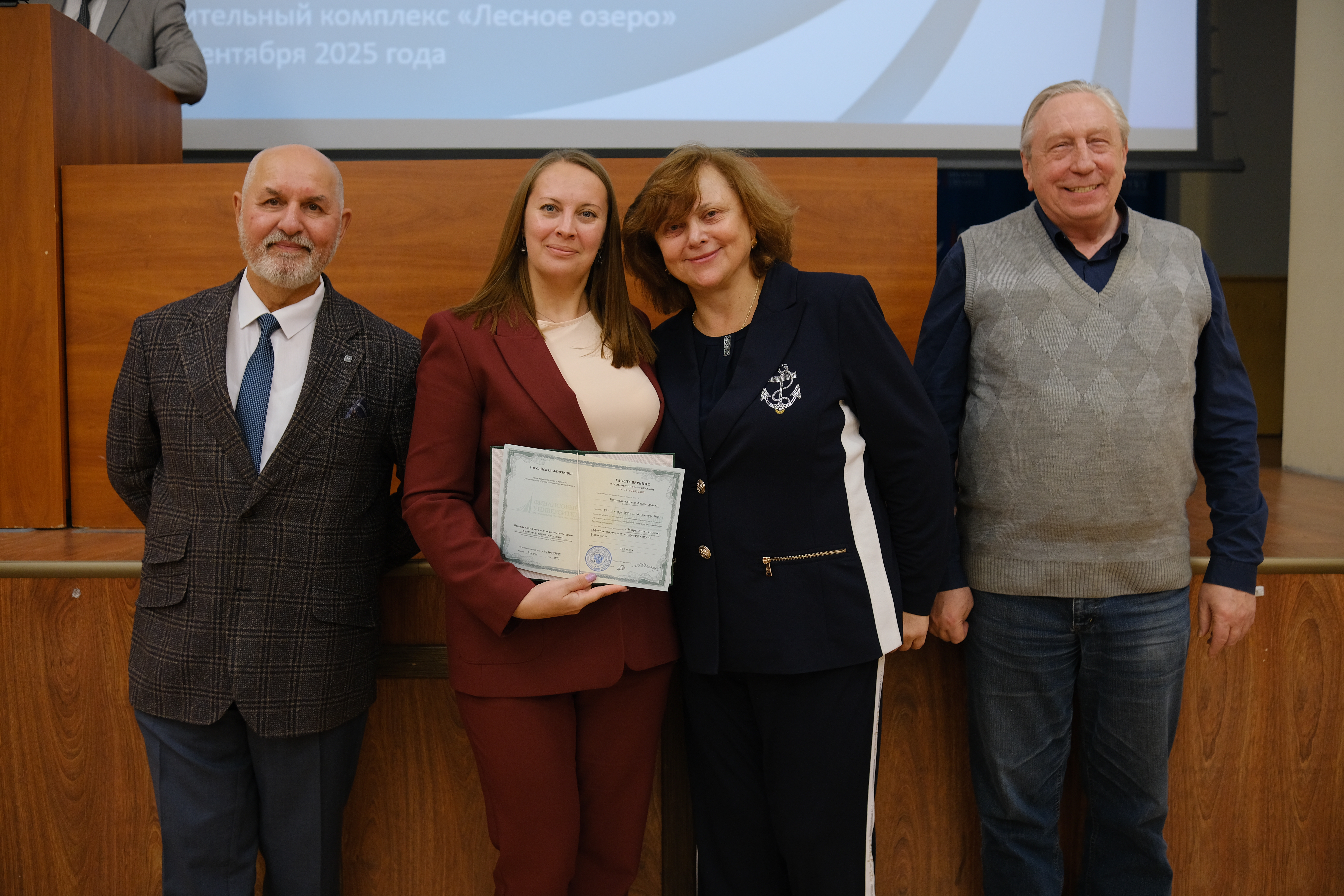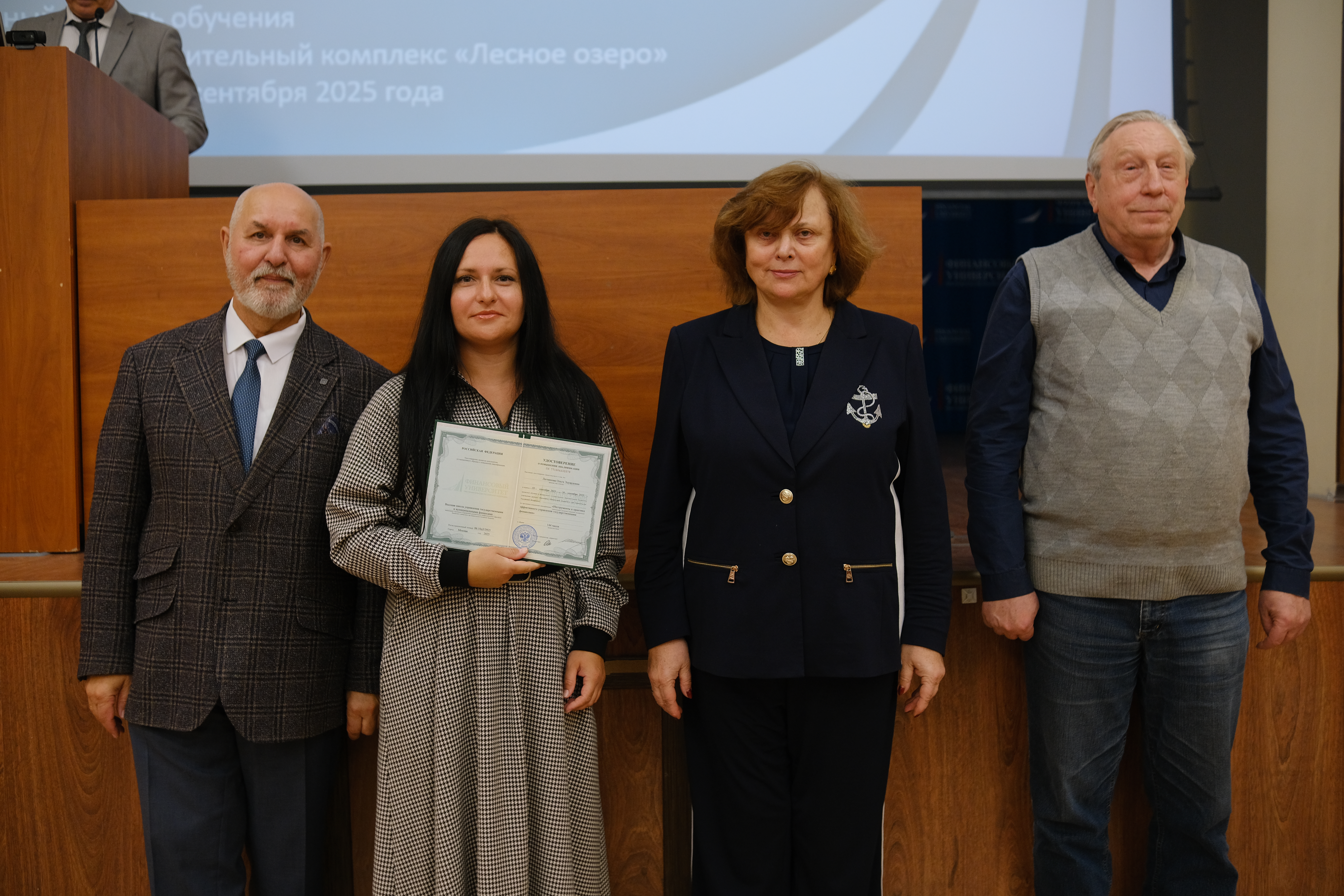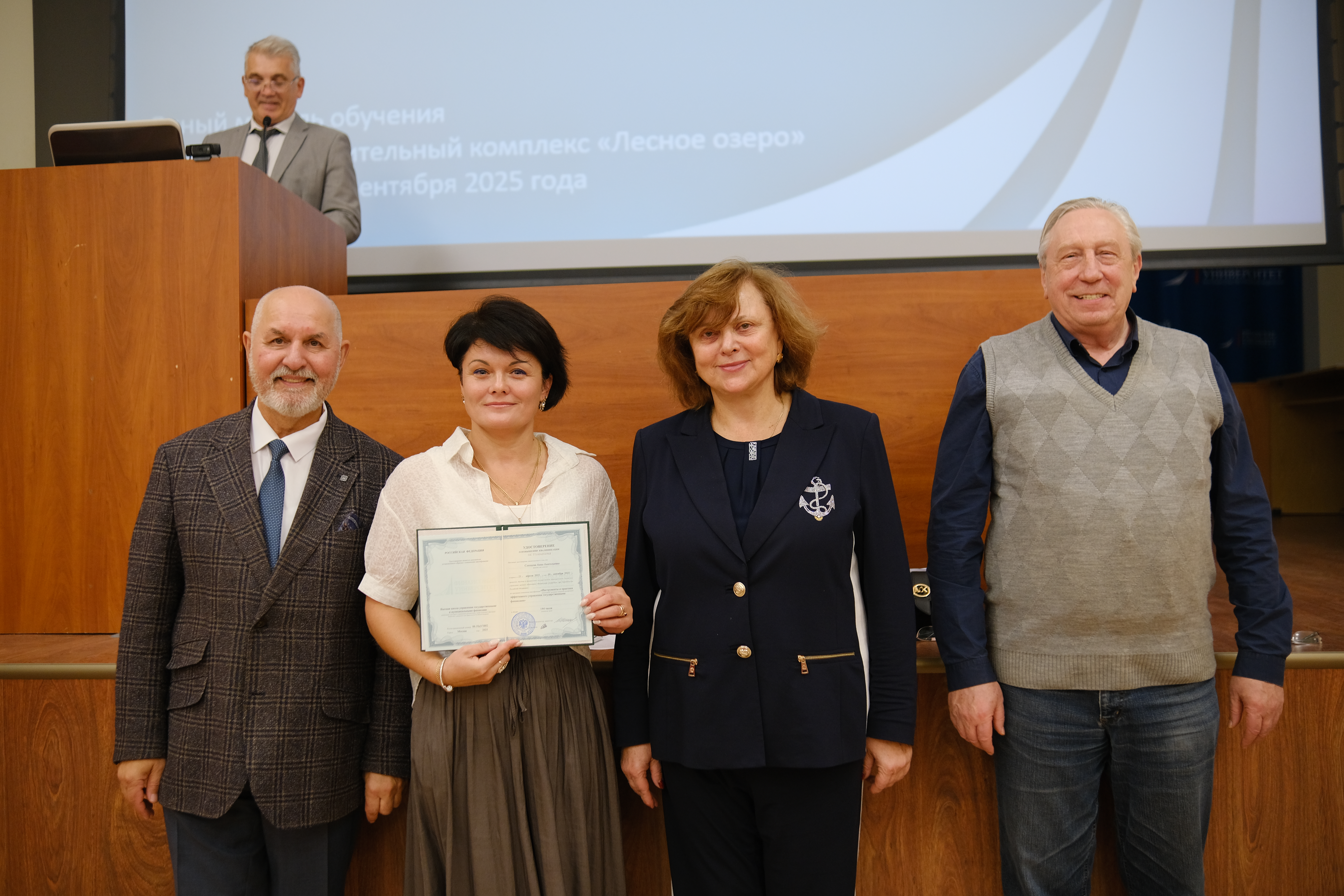 С успешным окончанием обучения слушателей поздравили проректор по дополнительному профессиональному образованию Диденко Елена Александровна, заместитель проректора по дополнительному профессиональному образованию Андрей Владимирович, заместитель проректора по дополнительному профессиональному образованию Игорь Сергеевич Шевалкин, директор Высшей школы управления государственными и муниципальными финансами Валерий Викторович Бондалетов.