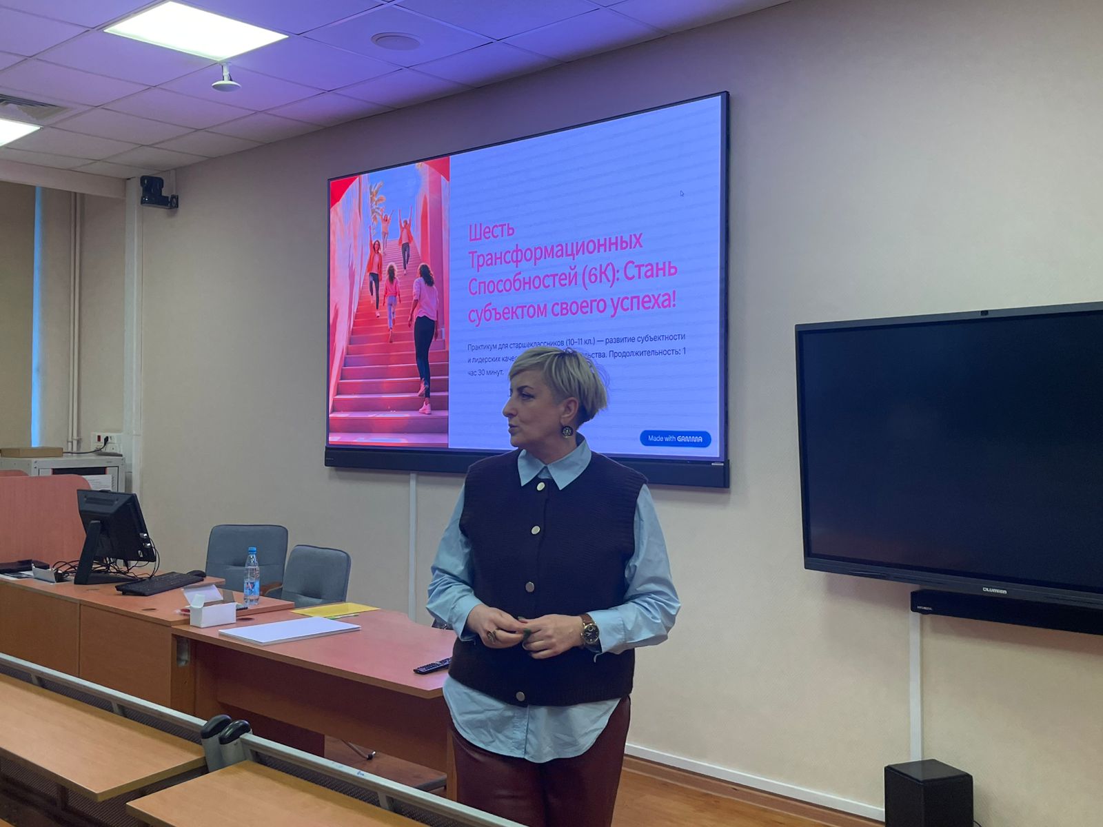 21 ноября 2025 года в Финансовом университете прошло профориентационное мероприятие Бизнес-тренинг «Ключевые компетенции лидера. Как развивать?» для учащихся 10‑х и 11‑х предпринимательских классов. Возглавила мероприятие Татьяна Шпицер — признанный эксперт в области развития лидерских качеств и автор уникальной методики «6К», которая предлагает системный подход к формированию ключевых компетенций современного лидера.