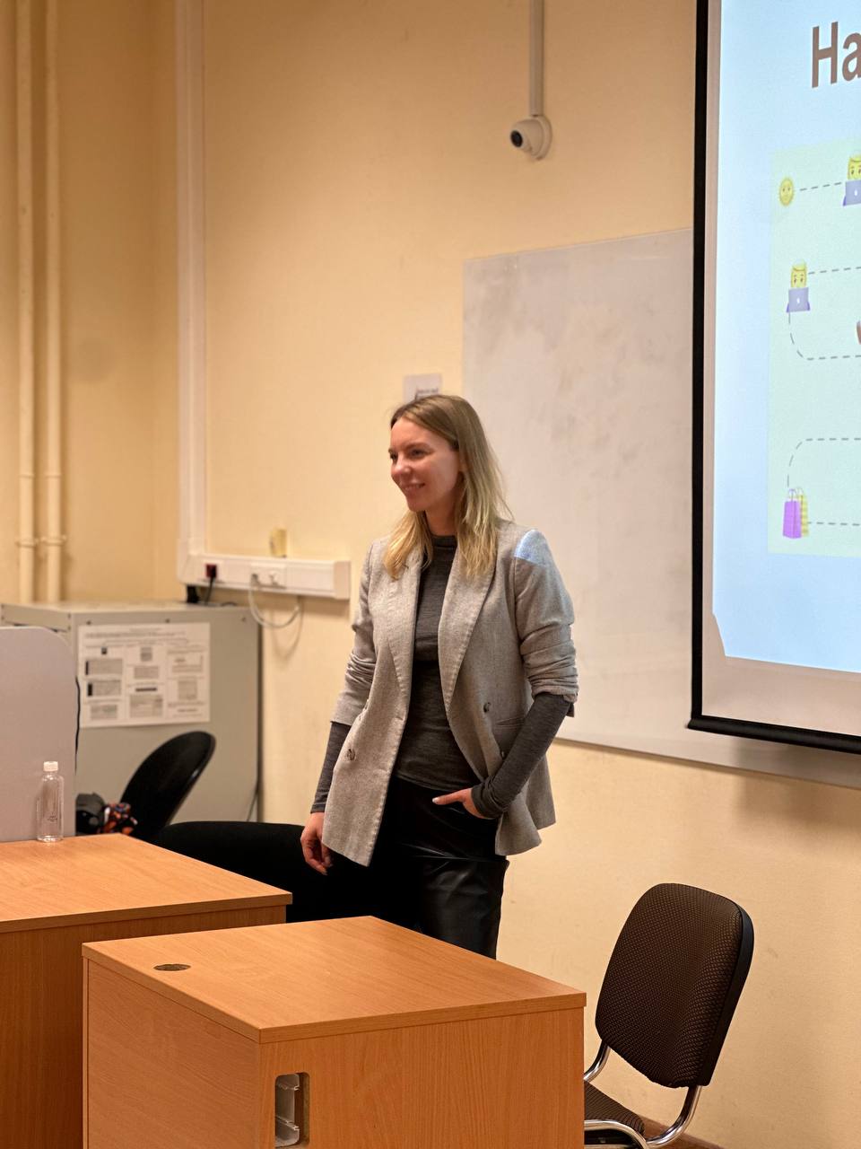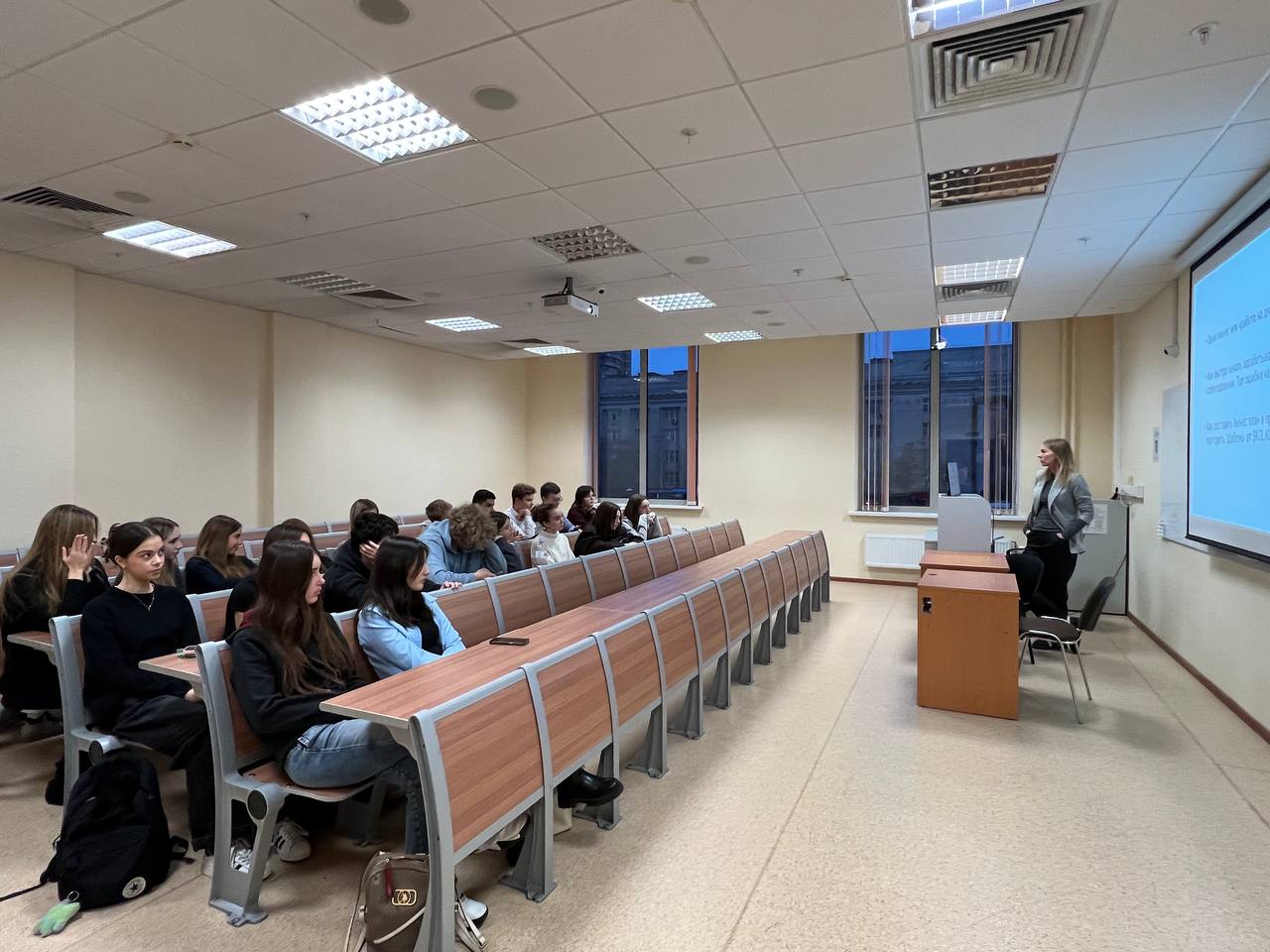 Софья Леонова менеджер направления GR Сбер, как всегда, умело направляла беседу в нужное русло. Благодаря её профессиональному ведению диалог выстроился в чёткую логическую структуру: обсуждение оставалось сфокусированным на темах, наиболее актуальных для школьников, при этом каждый участник смог включиться в разговор. Софья обеспечила баланс между теоретическими аспектами и практическими кейсами, поддерживая динамичный формат тренинга и следя за тем, чтобы все вопросы учащихся получали развёрнутые и полезные ответы.