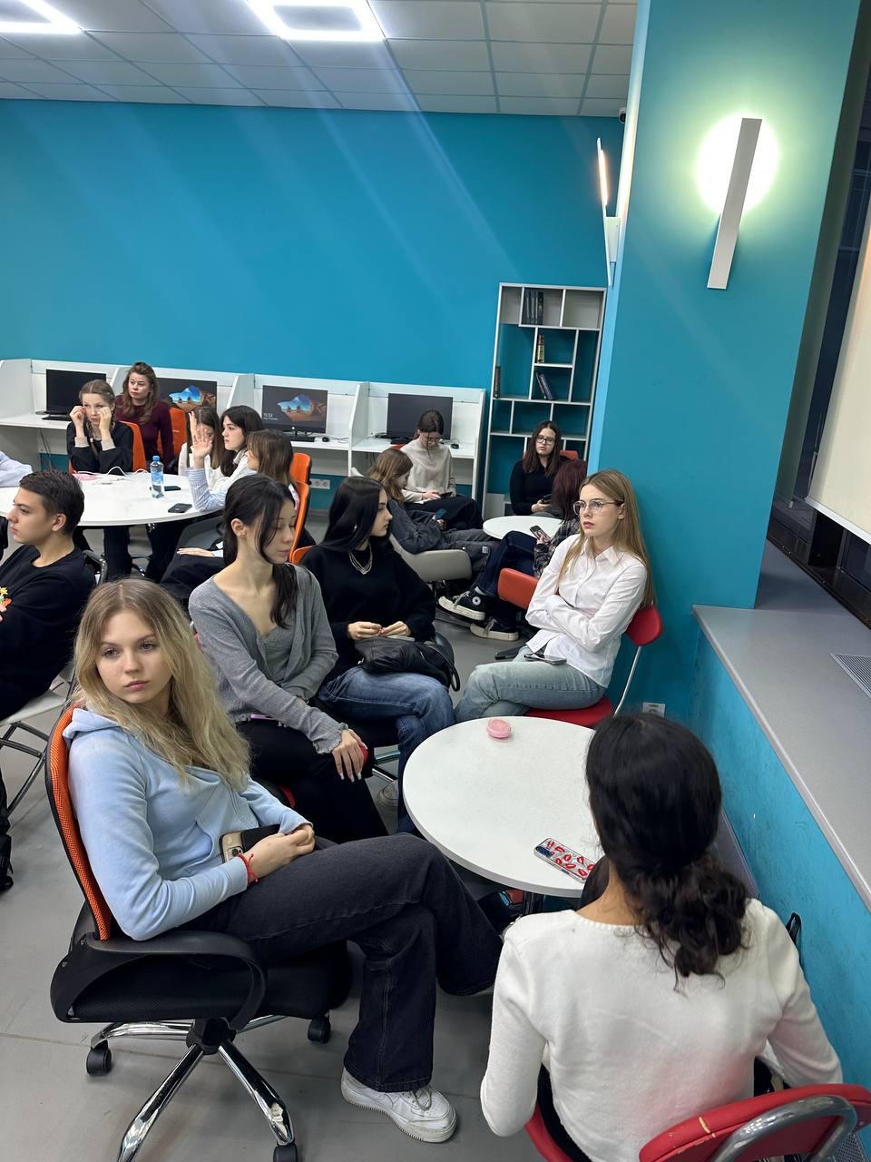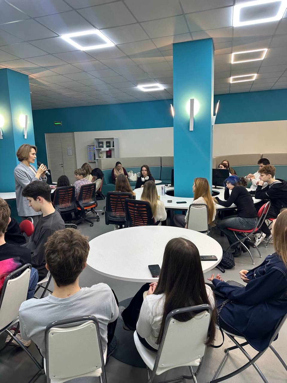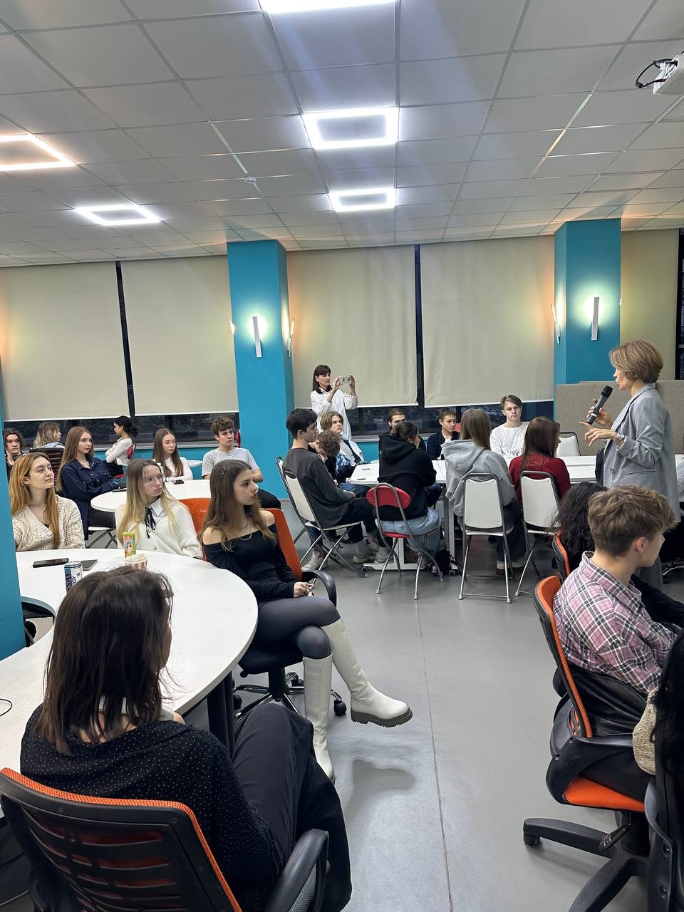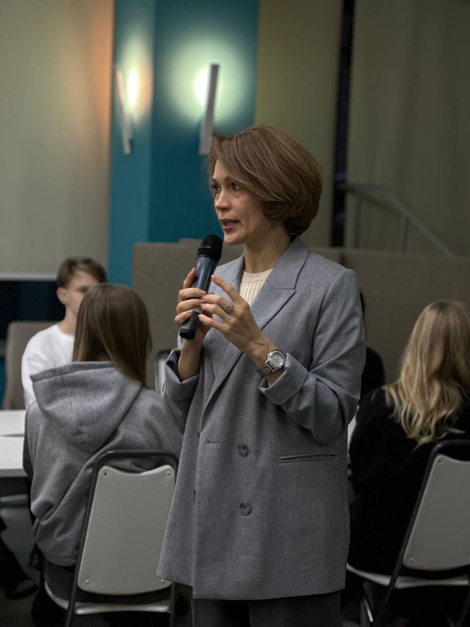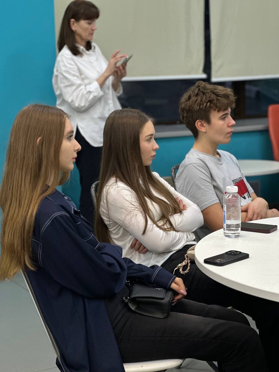 Модератором мероприятия выступила Софья Леонова, менеджер направления GR Сбер. В её задачи входили: координация хода дискуссии, контроль соблюдения регламента и выделение ключевых вопросов, наиболее интересных для школьной аудитории. Благодаря её участию диалог сохранил чёткую структуру и при этом остался живым и интерактивным.