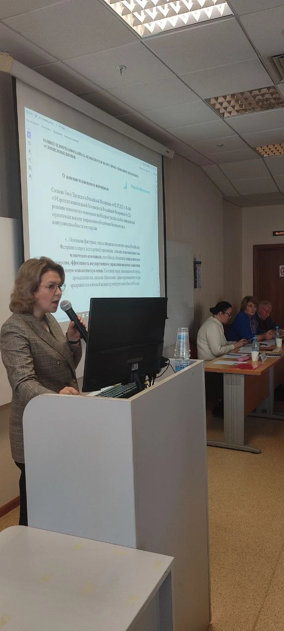 Профессор Вишнякова С.П. сделала доклад, посвященный формированию эколого-ориентированного мышления будущих руководителей с учетом рисков коэволюции человеческого разума и искусственного интеллекта.