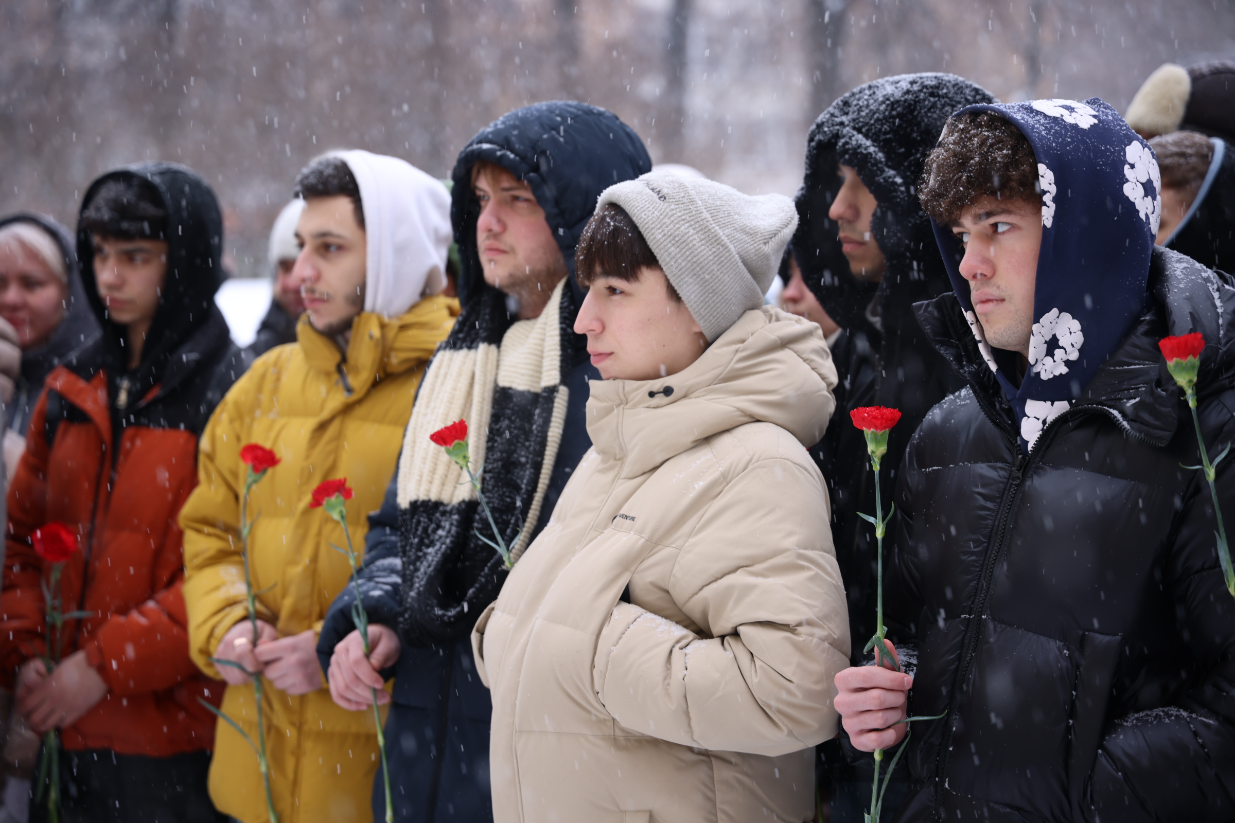 В начале торжественного мероприятия участники возложили цветы к памятнику героям 13-й Ростокинской дивизии народного ополчения, установленному у учебного корпуса Финансового университета в котором приняли участие студенты Факультета «Экономики и бизнеса», кафедра «Безопасность жизнедеятельности», работающие и работавшие ранее в ФУ ветераны, проходившие службу не только в ВС Советской Армии и ВМФ, ВС РФ, но и в других силовых структурах Государства.