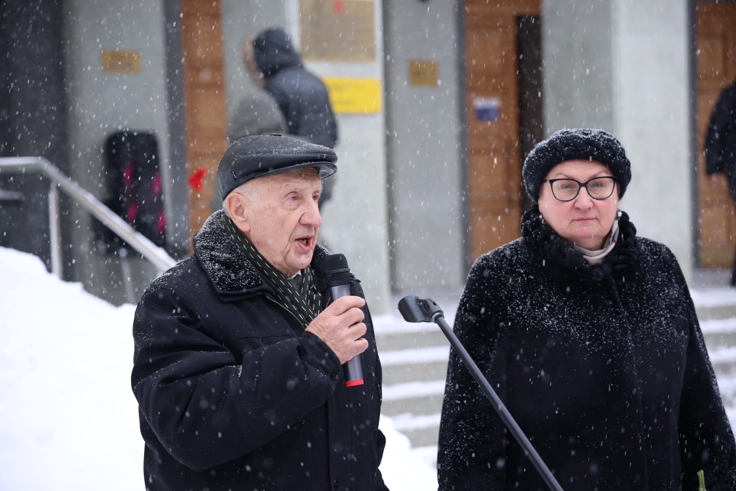 На митинге присутствовал координатор Сообщества родственников ополченцев 13-й дивизии народного ополчения, внук героя ополченца, погибшего в сражениях в котле «под г. Вязьмой» Попов Артем Геннадьевич. Он проинформировал участников митинга о большой работе, проводимой членами сообщества наследников, ополченцы, волонтеры, а также студенты ФУ. «Сегодня наш общий долг – хранить память о великом подвиге нашего народа и пресекать любые попытки фальсификации исторической роли нашей страны в победе над фашизмом».
