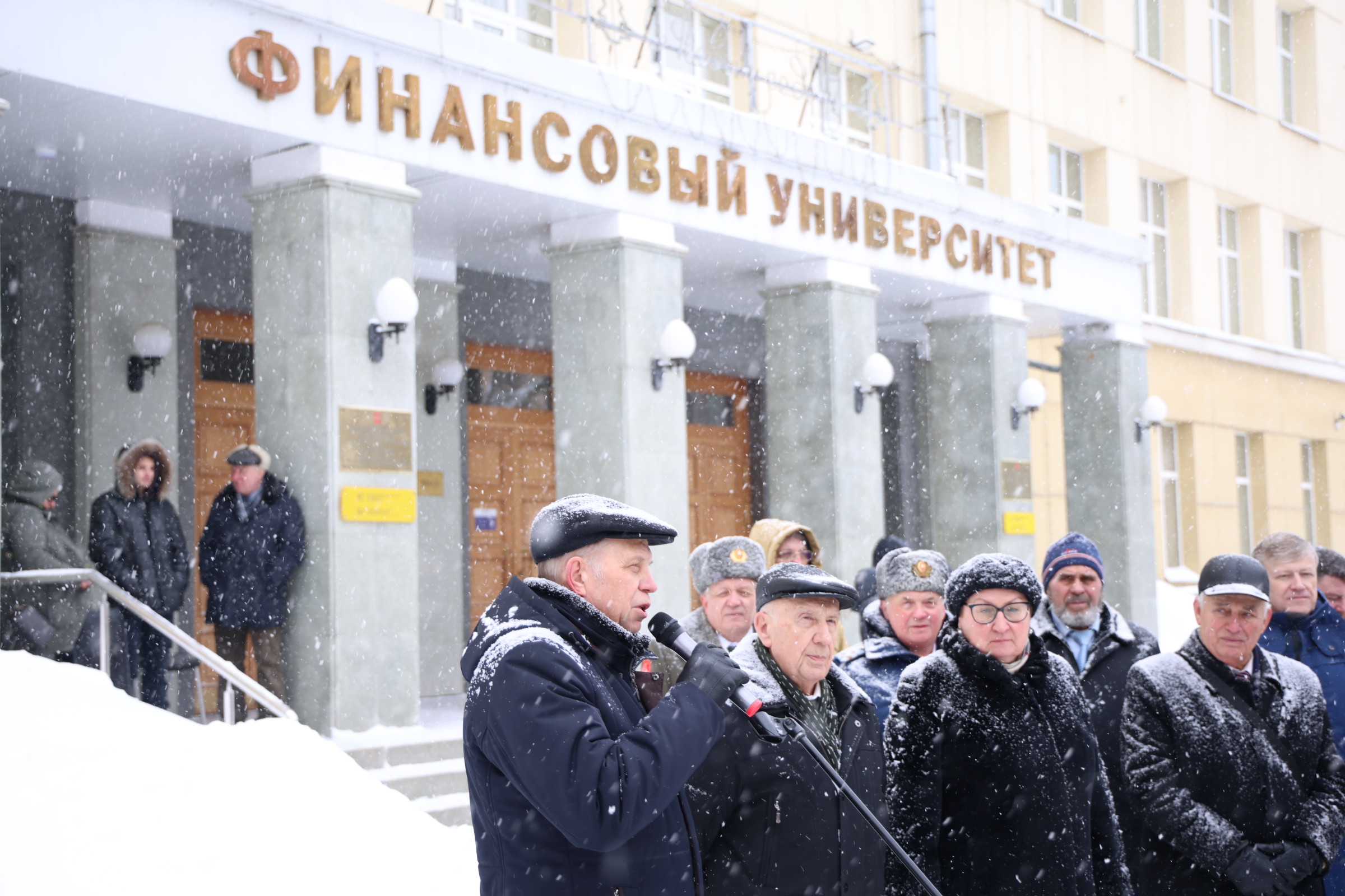 Традиционно праздник начался митингом у памятника погибшим воинам-ополченцам. Открыл митинг председатель Совета ветеранов профессор Н.З. Кунц. В своем выступлении он сказал: «Сегодня, в преддверии великого праздника «Дня Защитника Отечества» мы по традиции собрались здесь, у корпуса Финансового университета на улице Кибальчича, чтобы почтить память тех, кто ценой своей жизни отстоял свободу и независимость нашей Родины». Ветераны ФУ, ППС и студенты чтят память героев и на свои добровольные пожертвования установили памятник героям добровольцам.