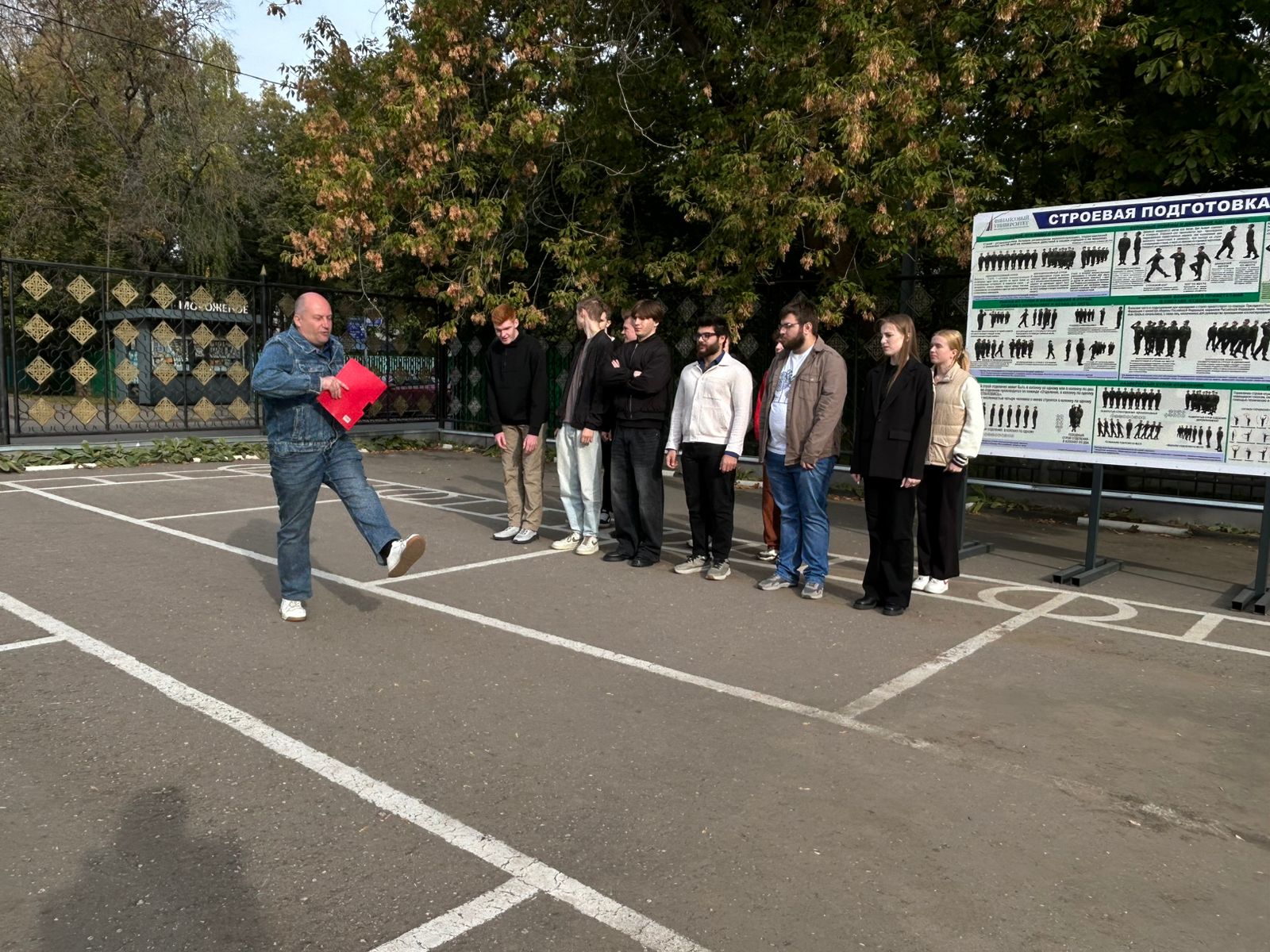 Кафедрой «Безопасность жизнедеятельности» с 01.09.205 г. по 10.10.2025 г. проведен цикл учебных занятий по теме №5 «Строевые приемы и движения без оружия» дисциплины «Основы военной подготовки» на специализированных строевых площадках на 6-ти территориях Финансового университета (Малый Златоустинский пер. д. 7; ул. Щербаковская, д. 38; 4-й Вишняковский проезд, д.4; Ленинградский проспект, д. 49; ул. Кибальчича, д. 1; ул. Верхняя Масловка, д.15).