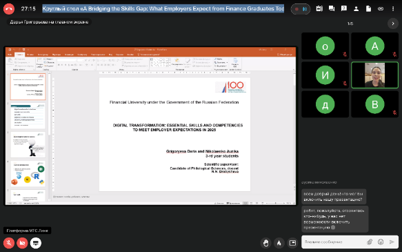 Участие в круглом столе позволило студентам изучить современные требования работодателей к выпускникам финансовых вузов и предложить оригинальные решения для сокращения информационного разрыва между академическим образованием и ожиданиями рынка труда. В представленных докладах участники осветили широкий спектр вопросов от наиболее востребованных работодателями гибких и технических навыков (hard & soft skills) и проблем адаптации в профессиональной среде до обсуждения реальных бизнес-кейсов и сущности модели «обучение на протяжении всей жизни» (lifelong learning). Особое внимание на секциях было уделено важности знаний в области цифровизации и искусственного интеллекта, роботизации процессов и кибербезопасности для выпускника финансового вуза.