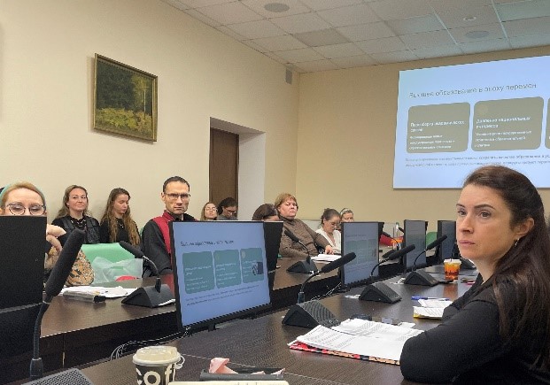 03.12.2025 Кафедра английского языка и профессиональной коммуникации провела ежегодную научную секцию «Новая геополитическая реальность: иностранные языки в высшей школе» в рамках VIII Готлибовских чтений «Востоковедение и регионоведение Азиатско-Тихоокеанского региона», организованных вузом-партнером - Иркутским государственным университетом. Научную секцию открыла д.э.н., профессор, заведующий Кафедрой английского языка и профессиональной коммуникации, модератор научного мероприятия Марина Владимировна Мельничук, поприветствовав участников и гостей секции (более 40 человек), отметив, что новая геополитическая реальность меняет вектор обучения иностранным языкам: с традиционного к высокотехнологическому.