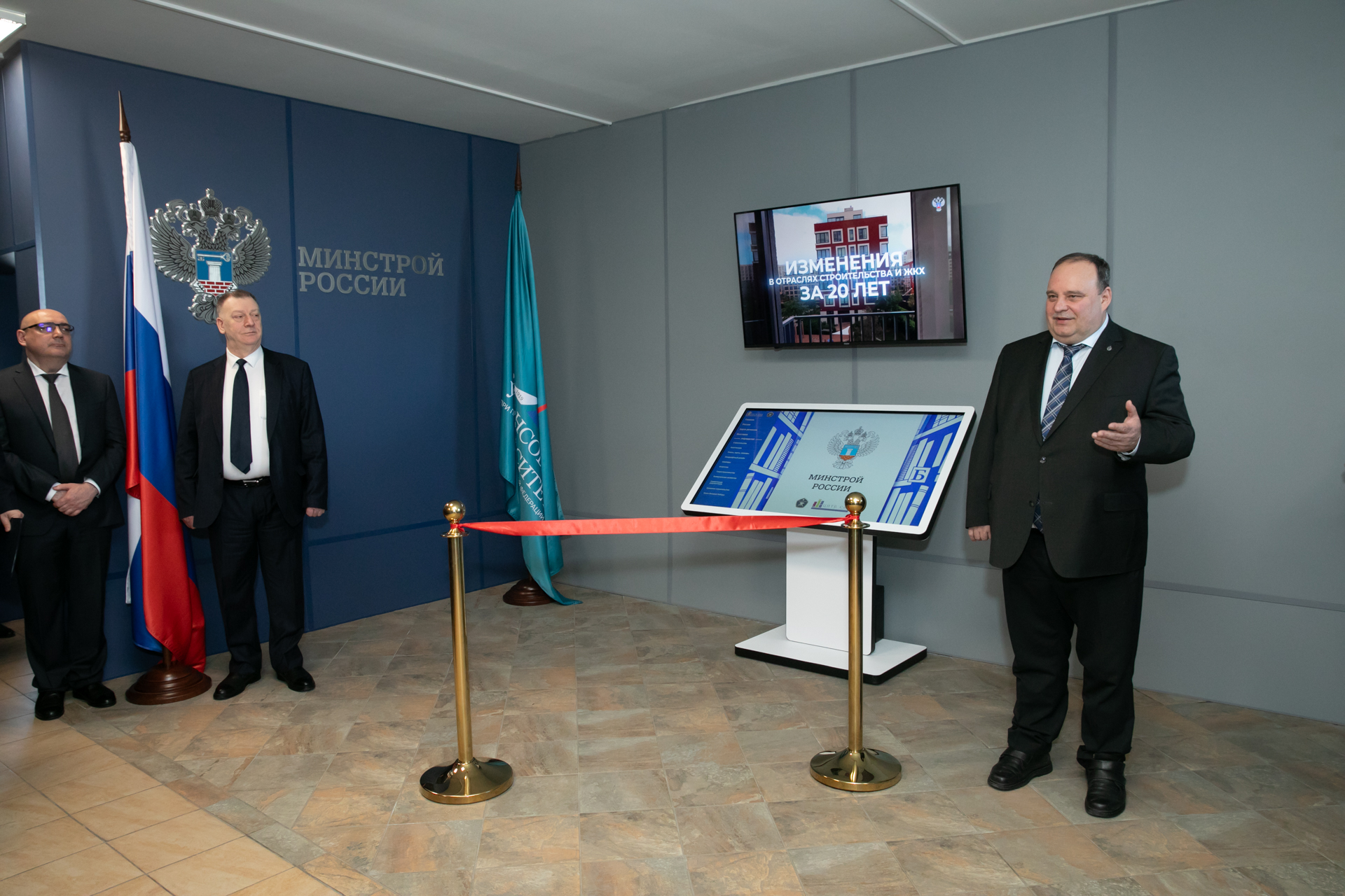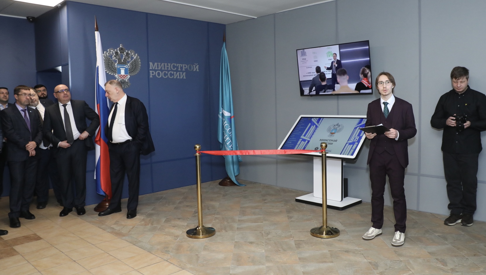 В церемонии открытия приняли участие также заведующий Базовой кафедрой Минстроя России, директор ФАУ "ФЦС" Владимир Николаевич Калинкин, заместитель заведующего Светлана Дмитриевна Юшкова и лаборант Вадим Викторович Федоров, который выступил модератором церемонии.