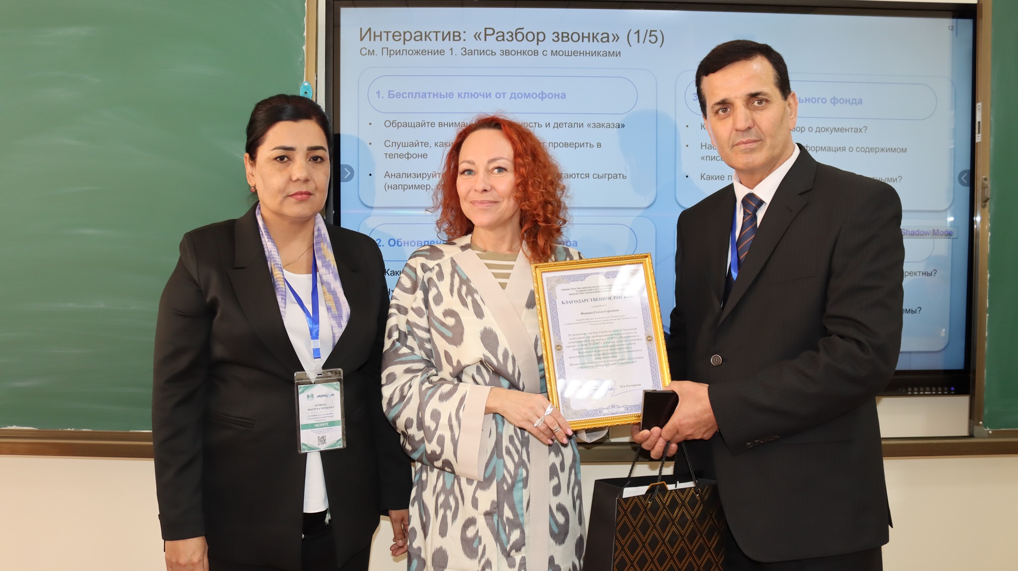 В этот день Стэлла Сергеевна Фешина провела для профессорско-преподавательского состава Таджикского государственного финансово-экономического факультета мастер-класс «Социальная инженерия: как противостоять технологиям», в рамках которого были рассмотрены современные методы манипулятивного воздействия, применяемые в цифровой среде, а также практические подходы к распознаванию мошеннических сценариев и укреплению личной финансовой и информационной безопасности.