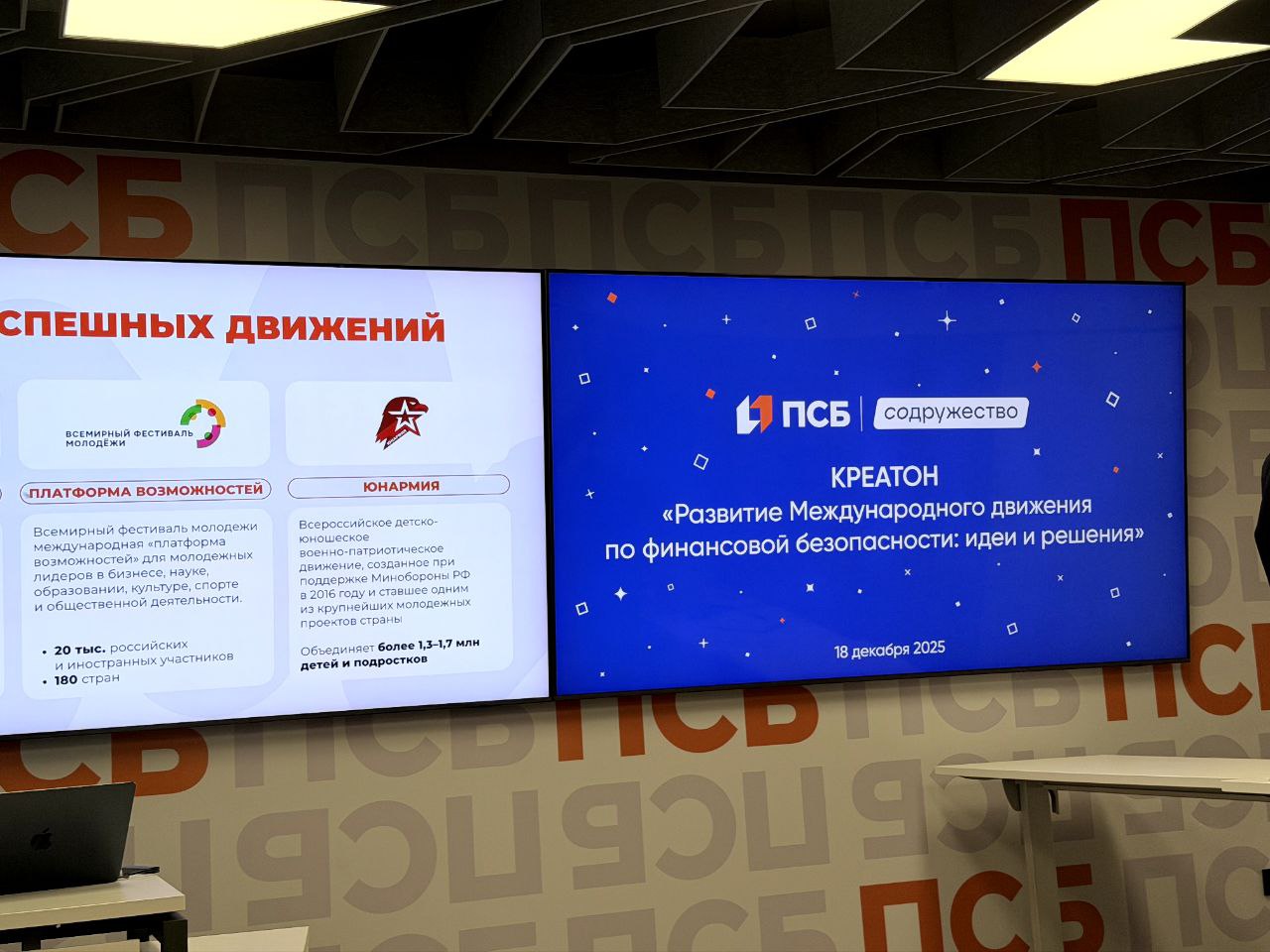 18 декабря 2025 года студенты Кафедры экономической безопасности и управления рисками – участники, призеры и победители V Международной олимпиады по финансовой безопасности посетили креатон «Развитие Международного движения по финансовой безопасности: идеи и решения», который прошел на кафедре ПАО «Банк ПСБ» Финансового университета при Правительстве РФ. Мероприятие стало площадкой для живого диалога, стратегического мышления и совместного поиска ответов на вызовы будущего в сфере финансовой безопасности.