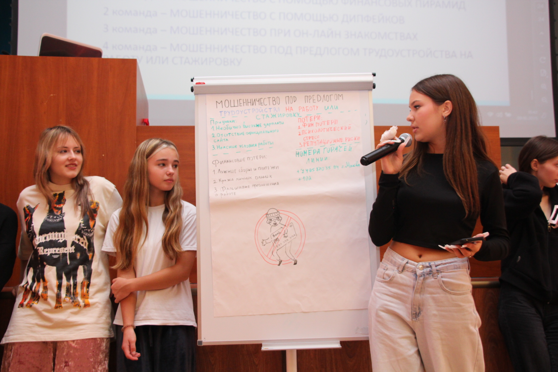 10 октября на базе учебно-оздоровительного комплекса «Лесное озеро» доценты кафедры Наталья Алексеевна Кабанова и Анастасия Сергеевна Бабанская провели серию занятий. Ребята изучали признаки и методы противодействия мошенничеству: финансовым пирамидам, дипфейкам, онлайн-знакомствам и мнимому трудоустройству, разбирали кейсы по профилактике дропперства. Тем самым была решена задача сформировать систему традиционных ценностей (гражданственность, патриотизм, противодействие преступным посягательствам на общечеловеческие и национальные интересы) в ходе практических занятий по финансовой безопасности личности.