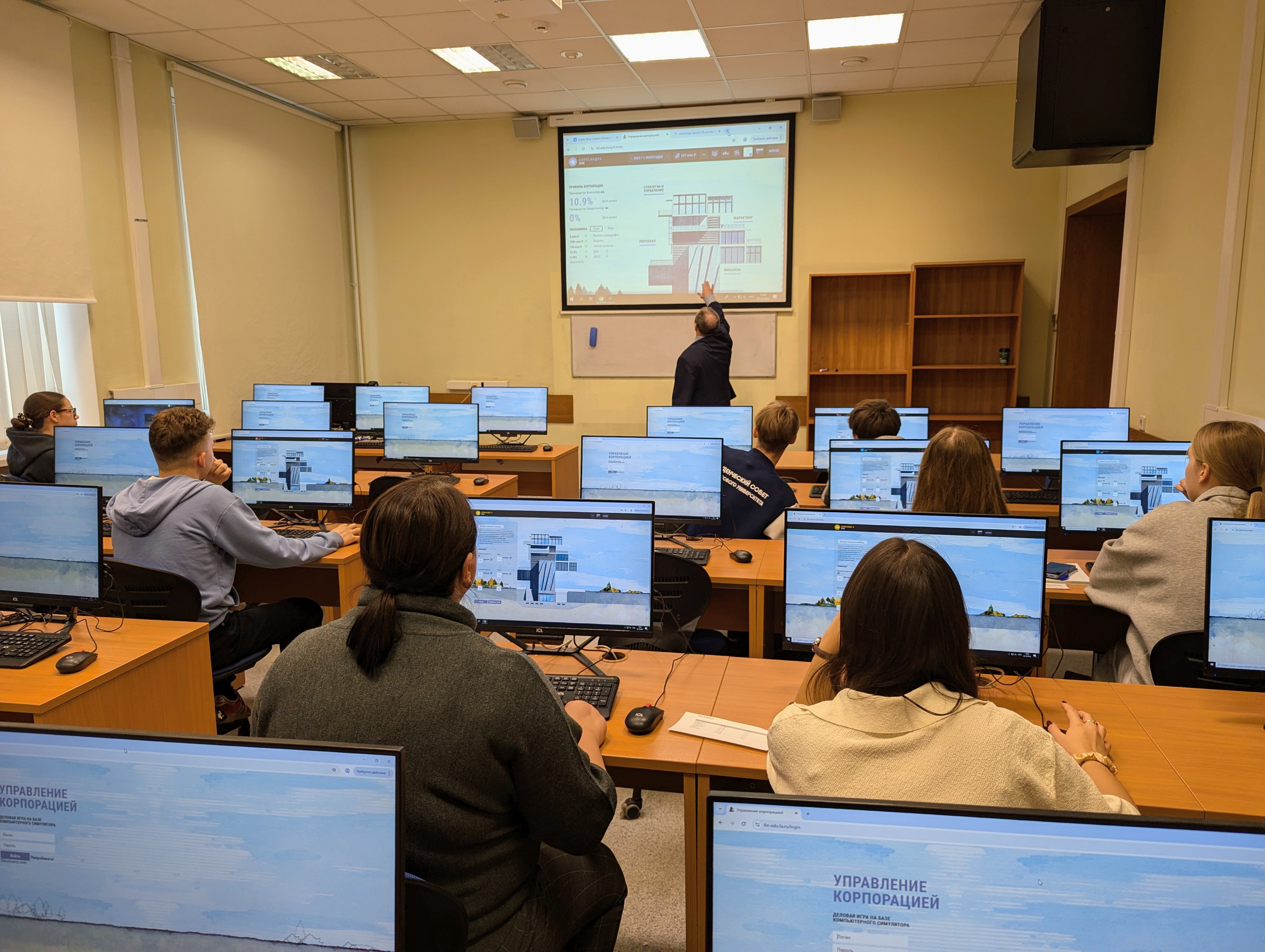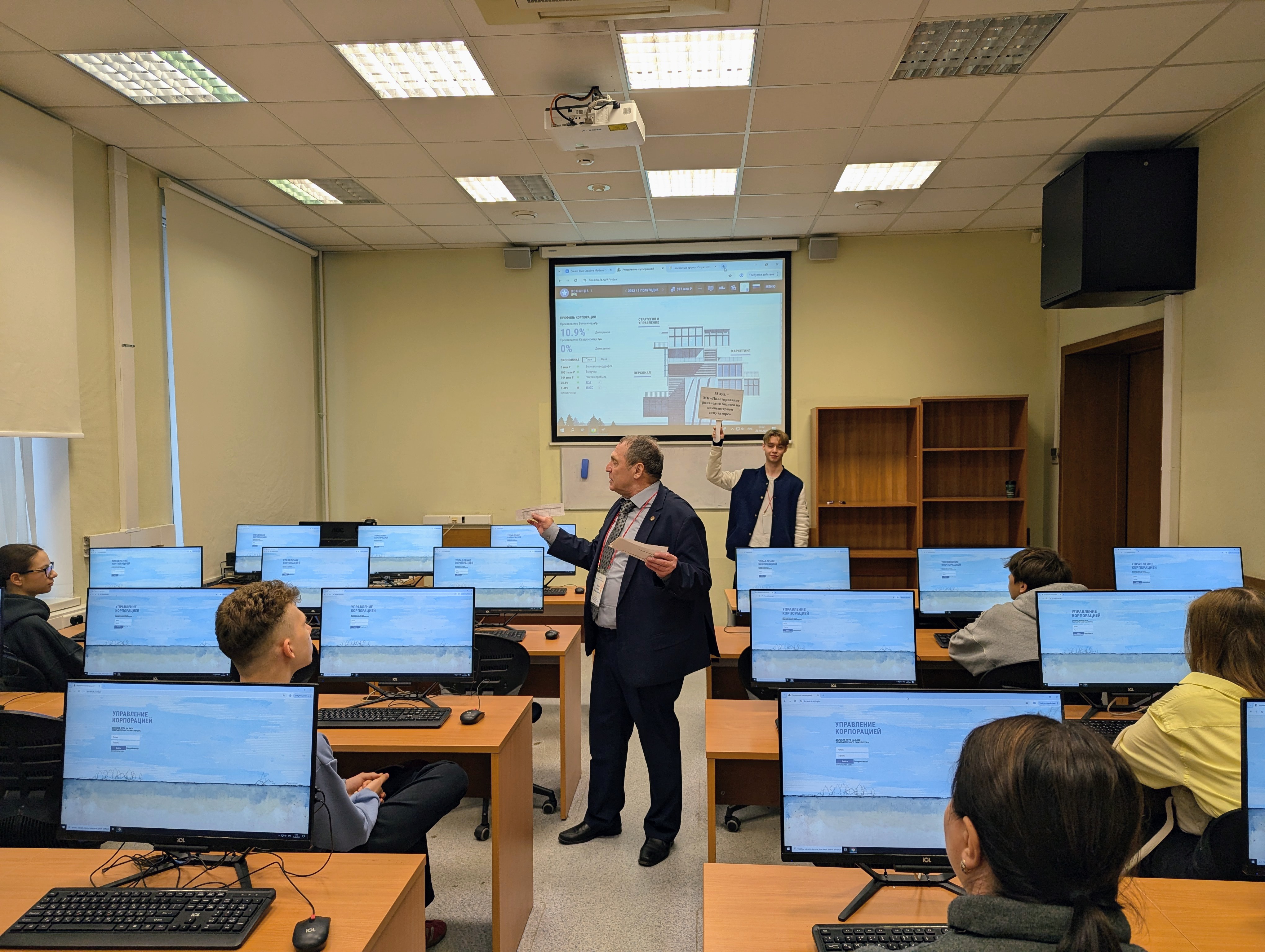 Во втором отделении мероприятия абитуриенты, которые выбрали для себя образовательные программы нашей кафедры, получили уникальную возможность стать участником Мастер-класса «Пилотирование финансами бизнеса на компьютерном симуляторе» по игре на бизнес-симуляторе «Управление корпорацией».