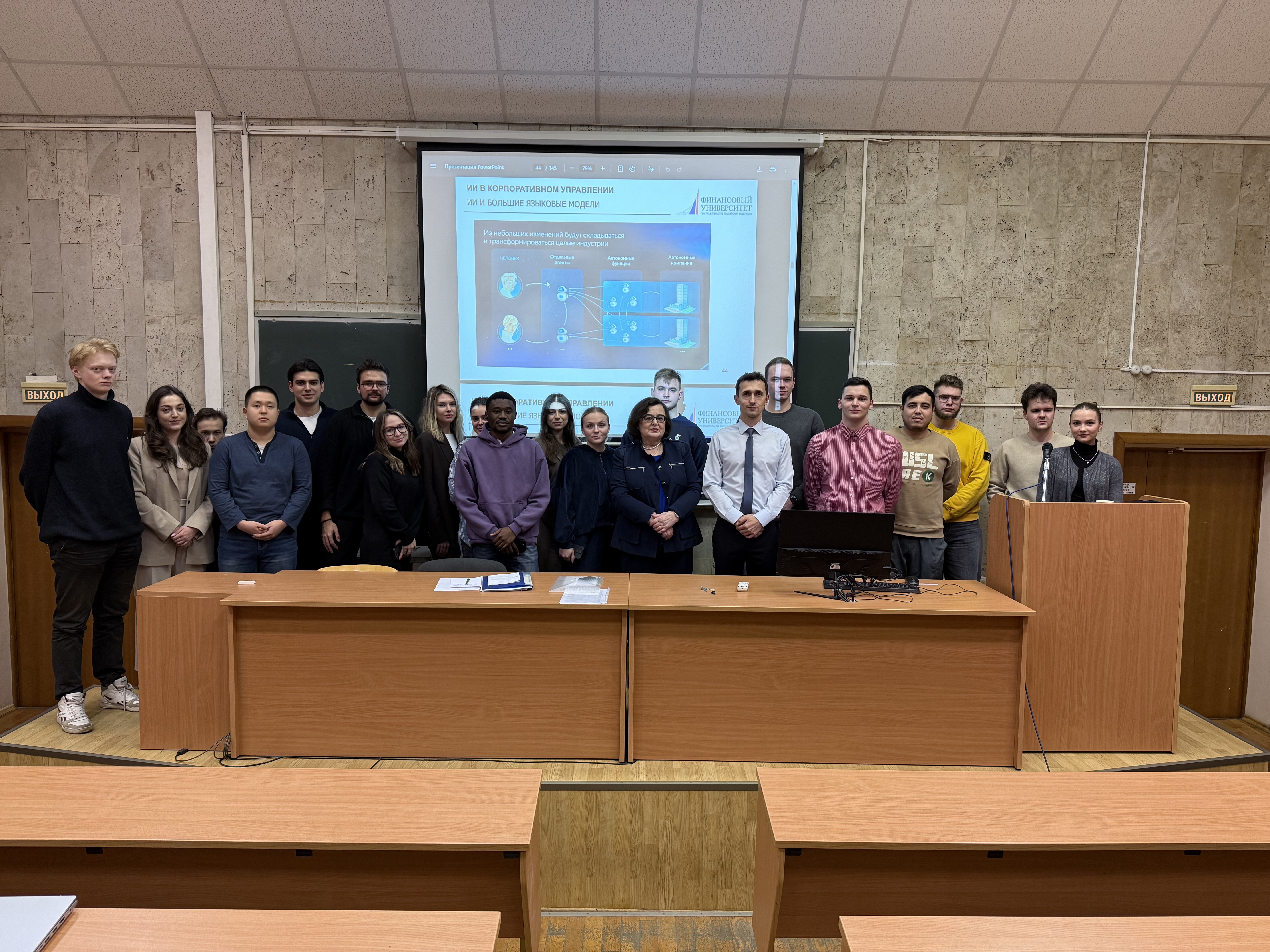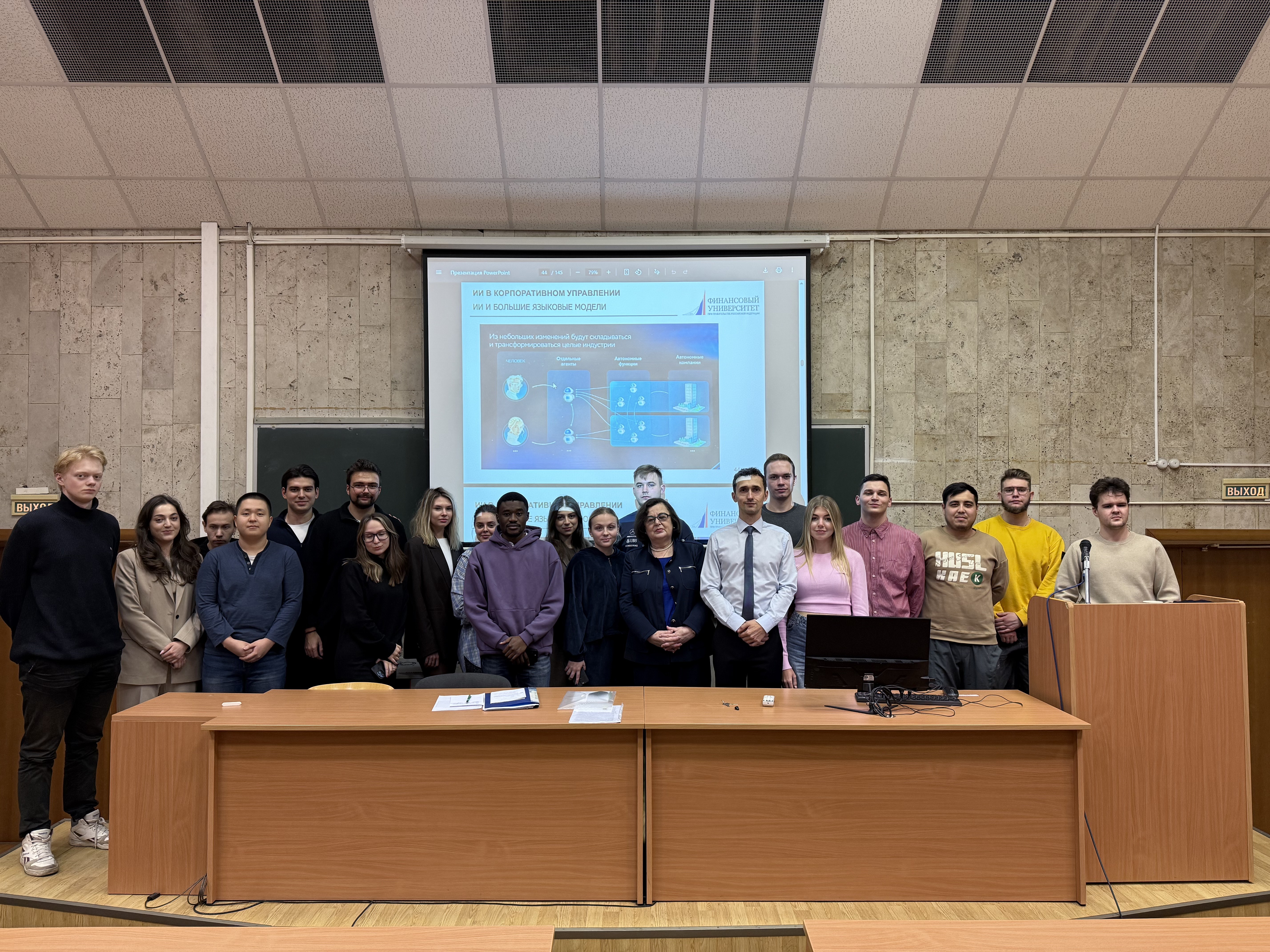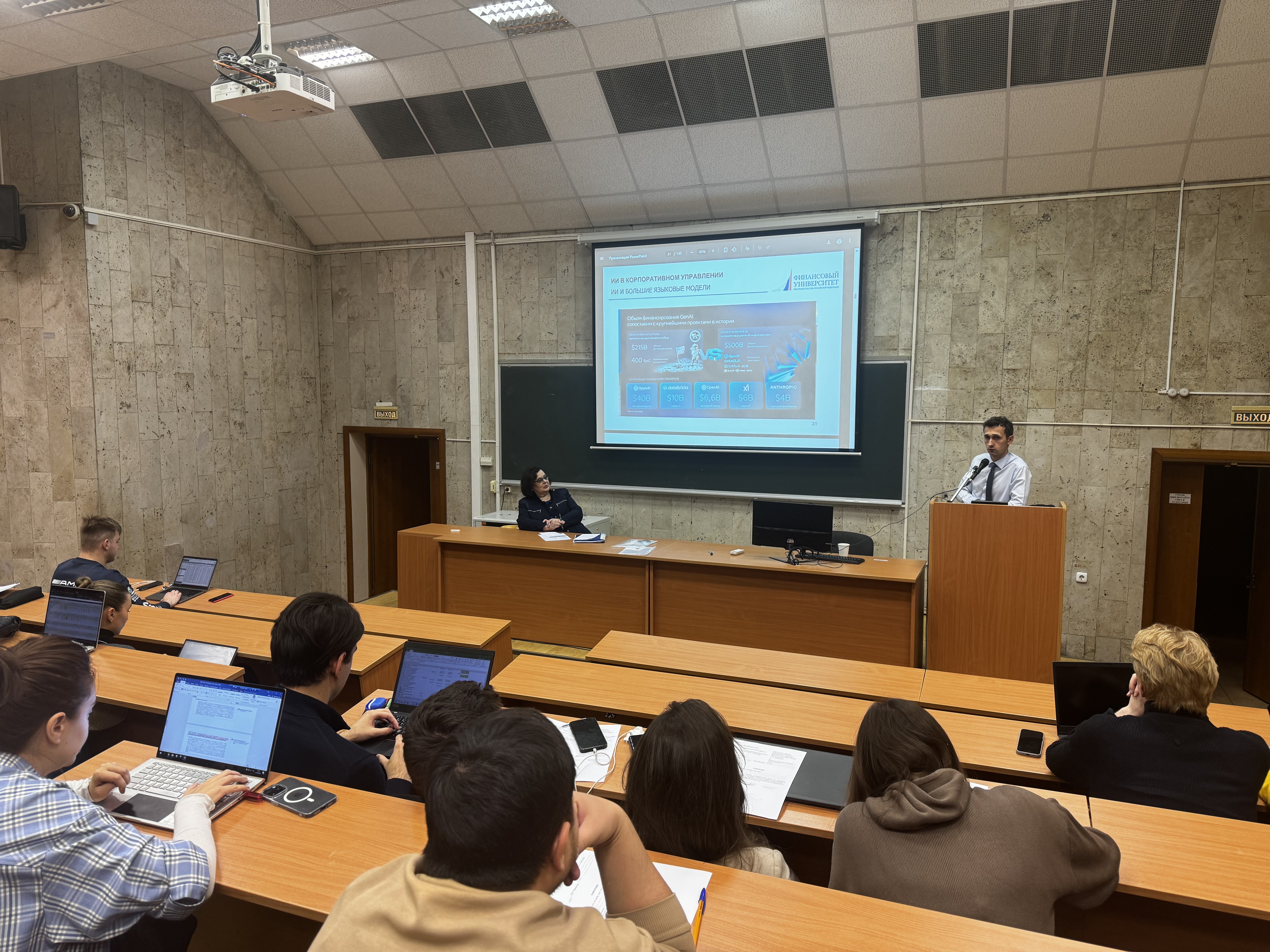 24 октября 2025 г. Абрамович Сергей Юрьевич, руководитель ‘’Управления технологиями’’ ООО ‘’Страховая компания’’ ‘’Сбербанк страхование жизни’’ провел мастер-класс студентам КУ25-1м на тему: ‘’ Искусственный интеллект в системе корпоративного управления’’, на котором были рассмотрены проблемы использования ИИ в практике корпоративного управления российских и зарубежных компаний.