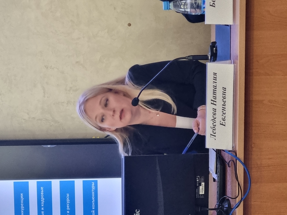 Лебедева Н.Е., к.э.н., генеральный директор ООО “Промгруп’’, руководитель подкомитета по кадрам в ТЭК РСПП, доцент Кафедры отраслевых рынков, остановилась на необходимости обеспечения технологического суверенитета, условиях и сложностях импортозамещения, проблемах и методах их решения, роли государства в перераспределении бюджета в пользу новых технологий.