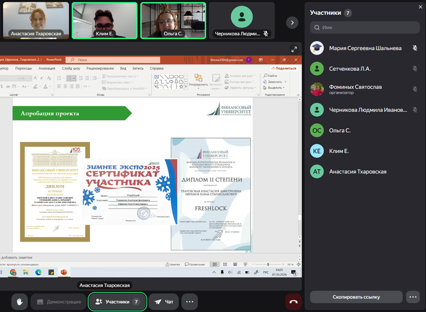 07 апреля 2026 года на Кафедре корпоративных финансов и корпоративного управления Факультета экономики и бизнеса прошло онлайн-заседание экспертной группы в составе представителей кафедры и бизнеса: