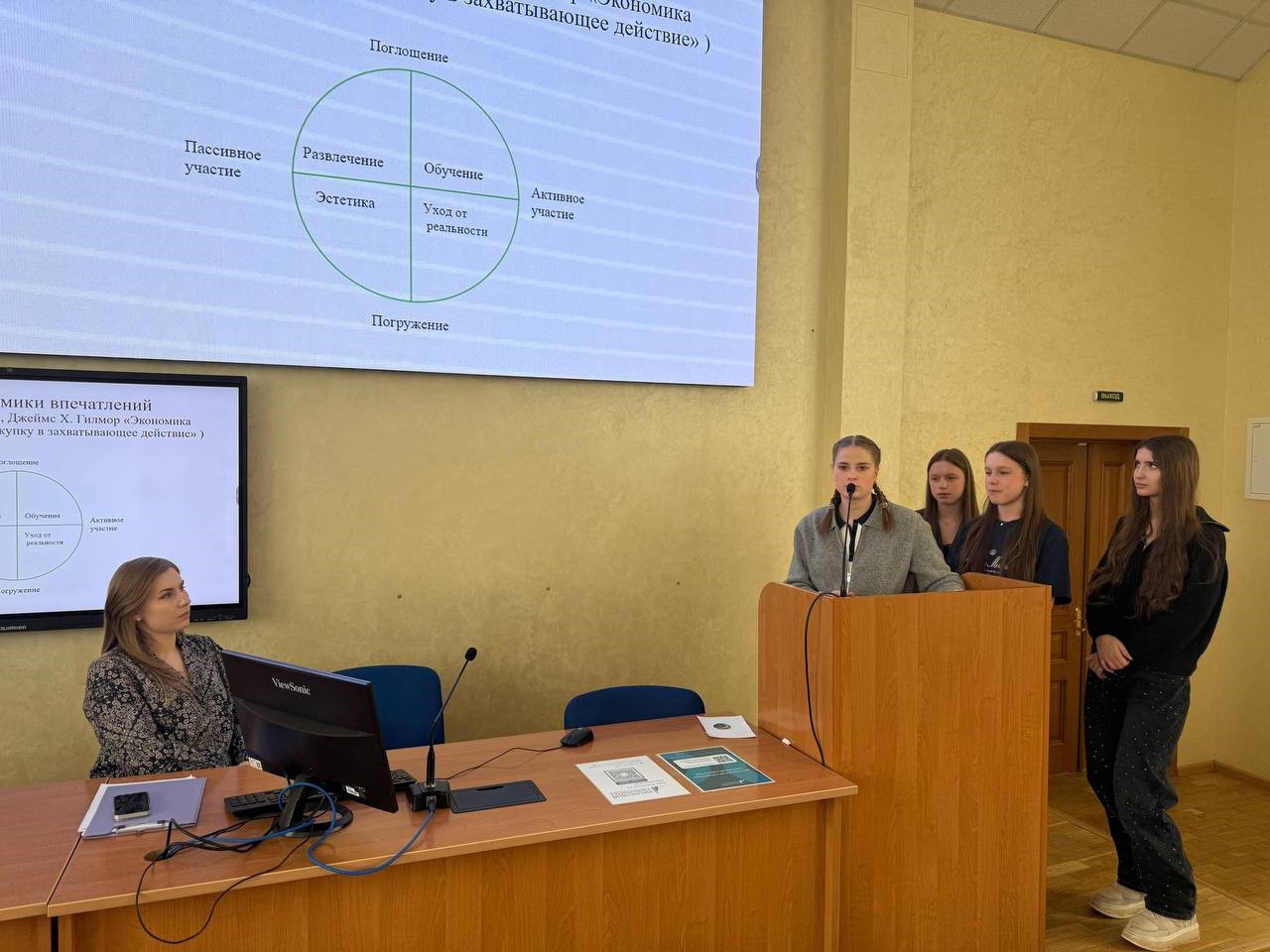 Старший преподаватель Кафедры корпоративных финансов и корпоративного управления, к.э.н., Тимонина А.Е. провела деловую игру «Векторы развития предпринимательской среды», в ходе которой школьники протестировали свой уровень информированности о текущих трендах в современной экономике, смогли определить уровень своей готовности к ведению собственного дела и попытались сформулировать концепцию бизнес-идеи.