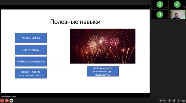 Алексей исчерпывающе раскрыл портрет профессии со всеми подробностями, щедро поделился с абитуриентами и студентами, которые только выбирают направление для старта, своими инсайтами в практической работе, а также предложил самым смелым попробовать свои силы в инвестиционном анализе под его руководством.