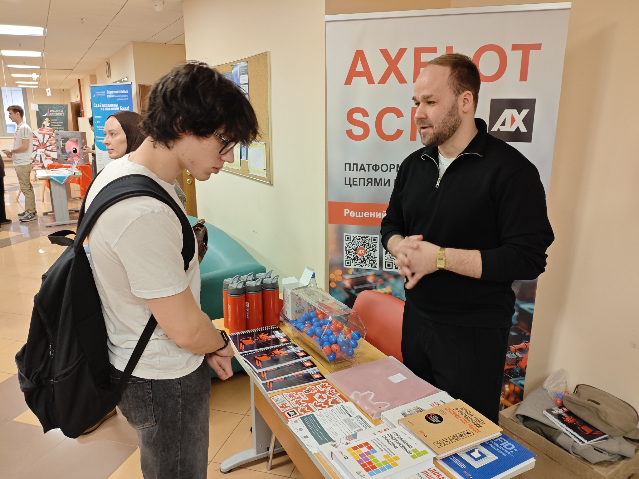 Кафедра логистики была представлена в консультационной зоне стендом ведущего партнёра ООО «Акселот-Л». Директор проектного офиса Евгений Владимирович Драндар проводил консультации абитуриентов и их родителей о перспективах логистического бизнеса в России и за рубежом, компетенциях современных логистов, а также карьерных траекториях студентов для поиска работы своей мечты. На стенде проходила беспроигрышная лотерея от Акселот, в которой могли участвовать все желающие. Помогал консультировать на стенде Акселот заместитель заведующего лабораторией «Цифровые технологии в логистике» Дмитрий Шалаев. Школьники и родители показали хороший уровень понимания логистики в разных направлениях и выигрывали призы с брендовой символикой Акселот.