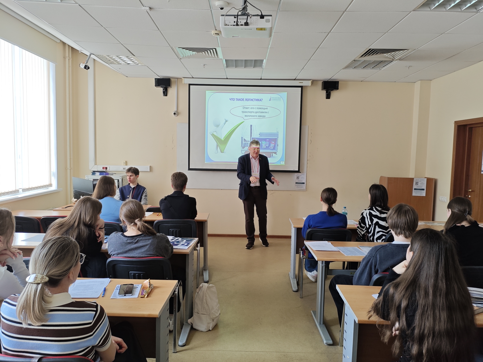 Кафедра логистики организовала и провела мастер-класс для школьников и их родителей «Логистика – двигатель жизни. Кто такие логисты и чем они занимаются?» под руководством заведующего лабораторией «Цифровые технологии в логистике», старшего преподавателя Кафедры логистики Факультета экономики и бизнеса Тарасова Д.Э. Во время проведения мастер-класса Дмитрию Эдуардовичу ассистировал студент 3-го курса бакалавриата, представитель Клуба логистов Назаров Никита, который отвечал на вопросы об особенностях обучения на направлении «Логистика». Консультировали всех интересующихся логистикой заведующий кафедрой, профессор Петров И.В., профессор Ларин О.Н., профессор Капустина Н.В. и др.