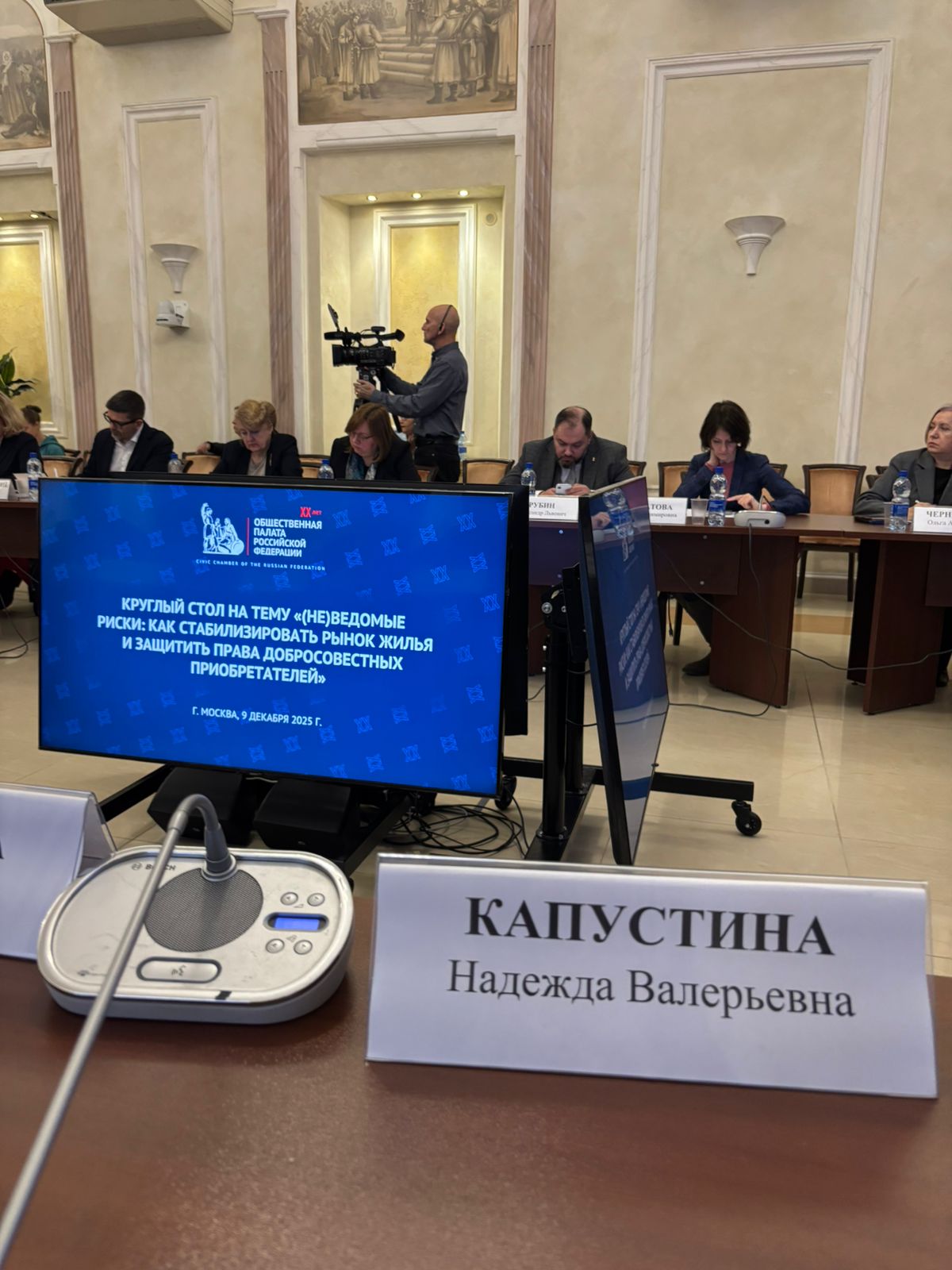 9 декабря 2025 года профессор Кафедры логистики Факультета экономики и бизнеса Капустина Надежда Валерьевна по приглашению Общественной палаты РФ приняла участие в круглом столе «(Не)ведомые риски: как стабилизировать рынок жилья и защитить права добросовестных приобретателей»