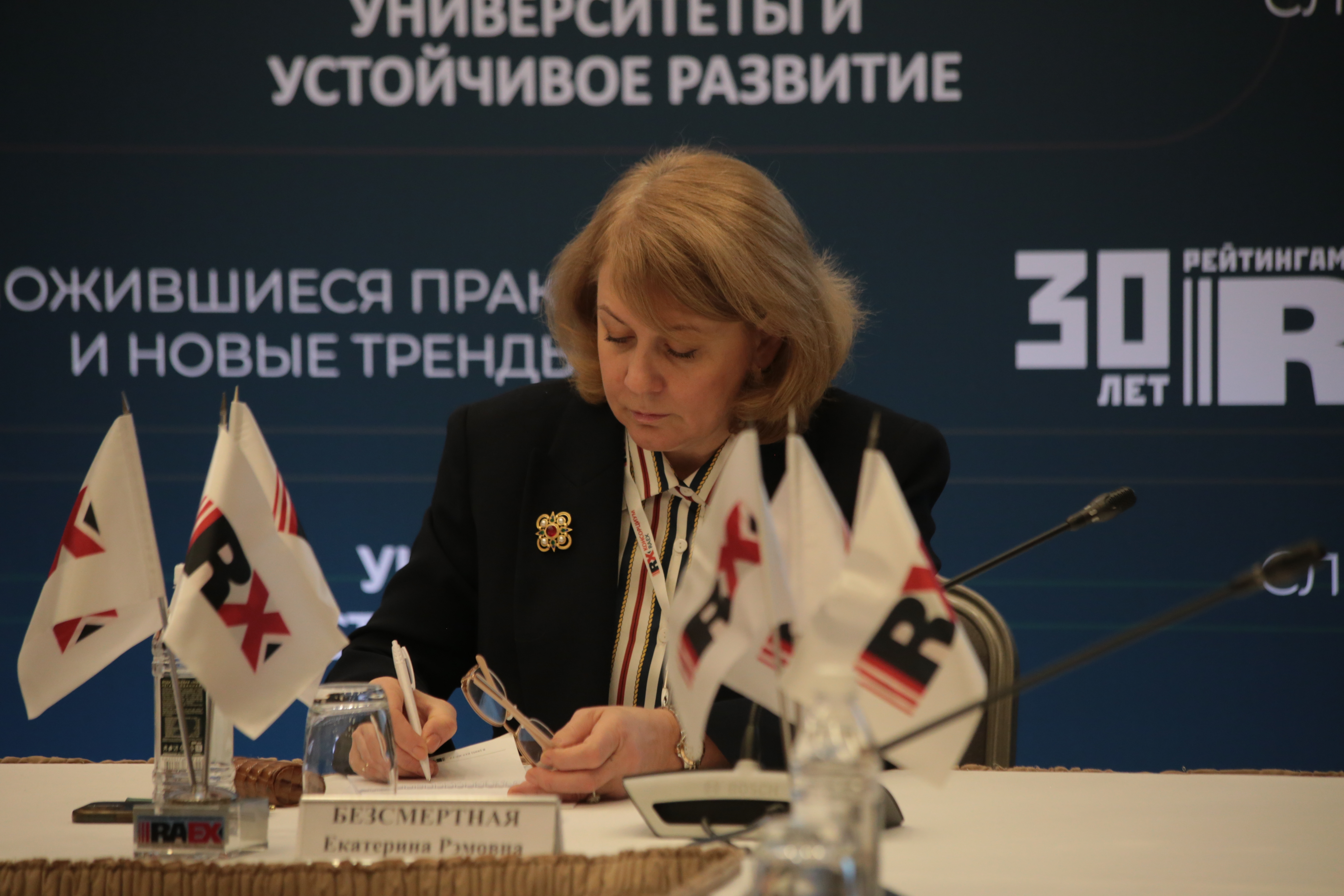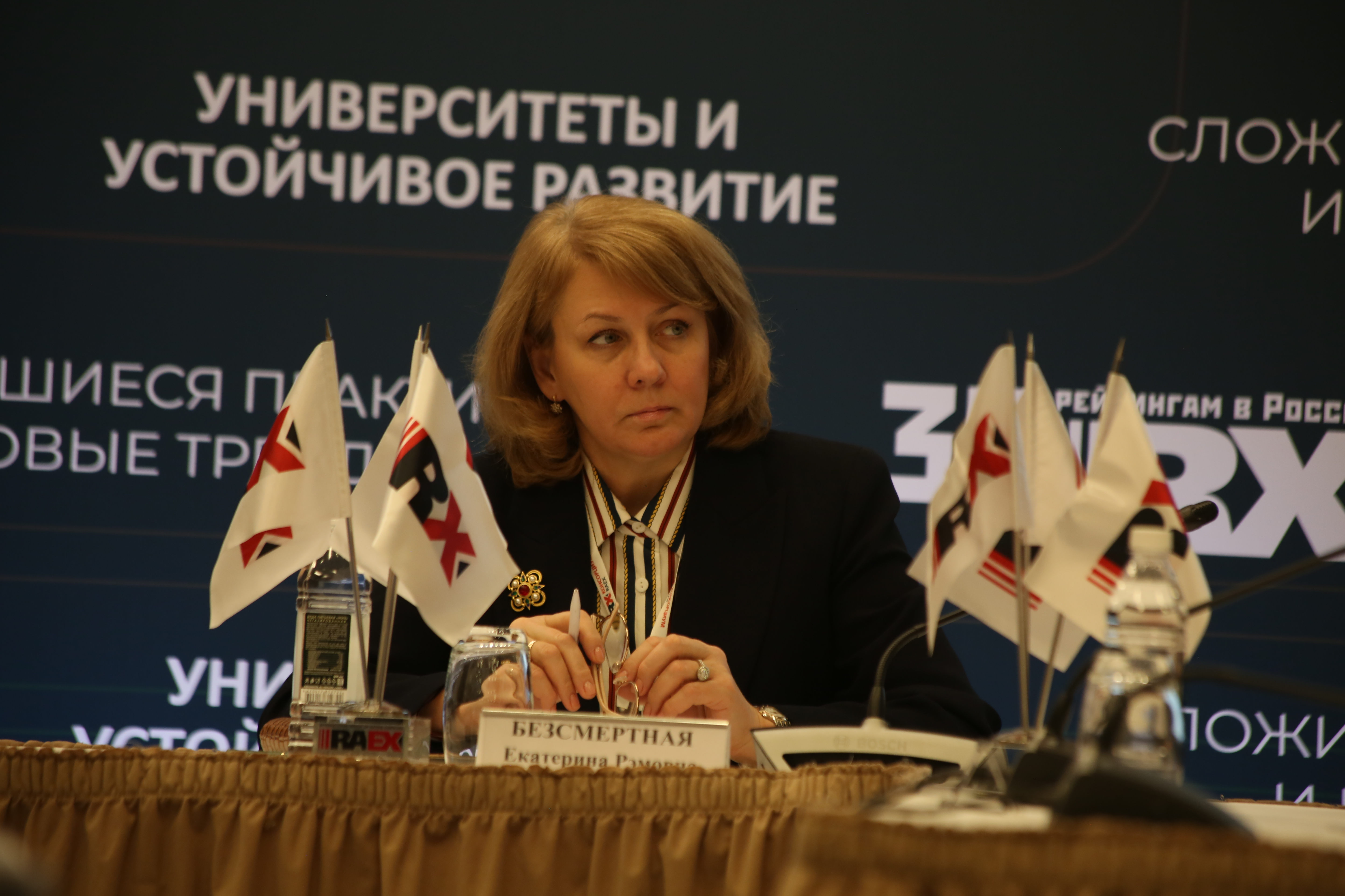 Декан Факультета экономики и бизнеса Безсмертная Екатерина Рэмовна выступила в качестве спикера на ежегодной конференции «Университеты и устойчивое развитие», организованной рейтинговым агентством RAEX. Мероприятие, собравшее более 300 представителей ведущих вузов, государственных органов, экспертного сообщества и бизнеса, прошло 3 декабря 2025 года в Москве.