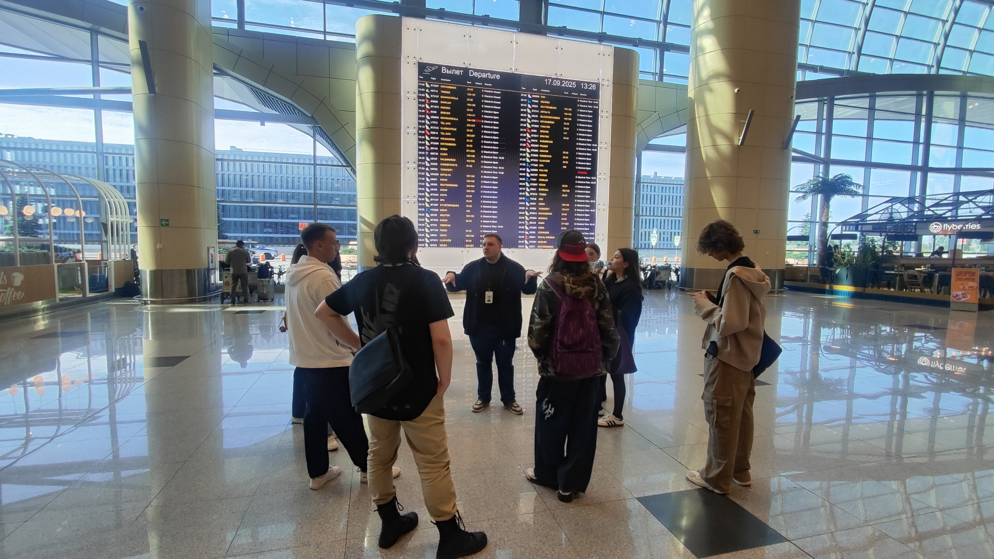 В рамках акции "День без турникетов" студенты 1 курса Факультета экономики и бизнеса, а также старший преподаватель кафедры корпоративных финансов и корпоративного управления Марина Вадимовна Довгань посетили экскурсию по терминалам аэропорта Домодедово. Сотрудники HR отдела провели участников по всем известным локациям аэропорта, а также показали не всем известные места, о которых многие не знают или куда не все доходят. Так, студенты узнали, что в аэропорту есть свой медицинский центр с широким спектром услуг вплоть до массажа, комната матери и ребёнка, где родители могут оставить детей под присмотром сотрудников аэропорта, а также музей ретро автомобилей, собранных из разных уголков планеты.