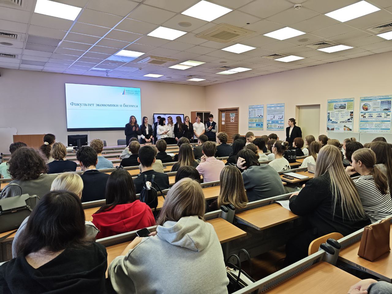 и студентами Факультета экономики и бизнеса, которые по традиции рассказали об особенностях обучения на факультете и внеурочной деятельности. Для ребят были подготовлены различные задания в формате кейсов, которые помогли узнать много нового и важного.