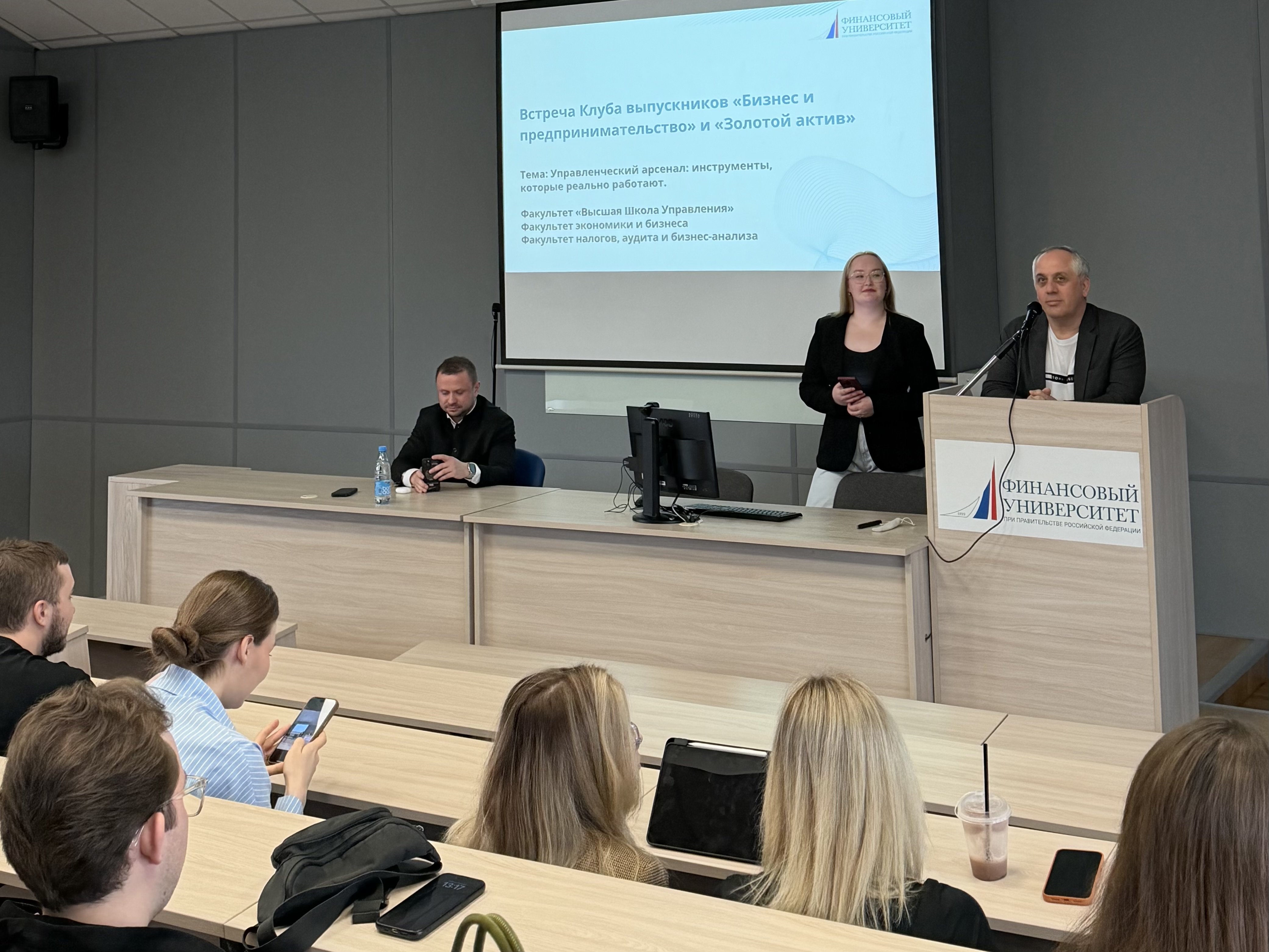 Перед слушателями выступили выпускники разных лет, которые поделились практическим опытом и затронули актуальные вопросы управления, целеполагания, авторитета и отчетности: