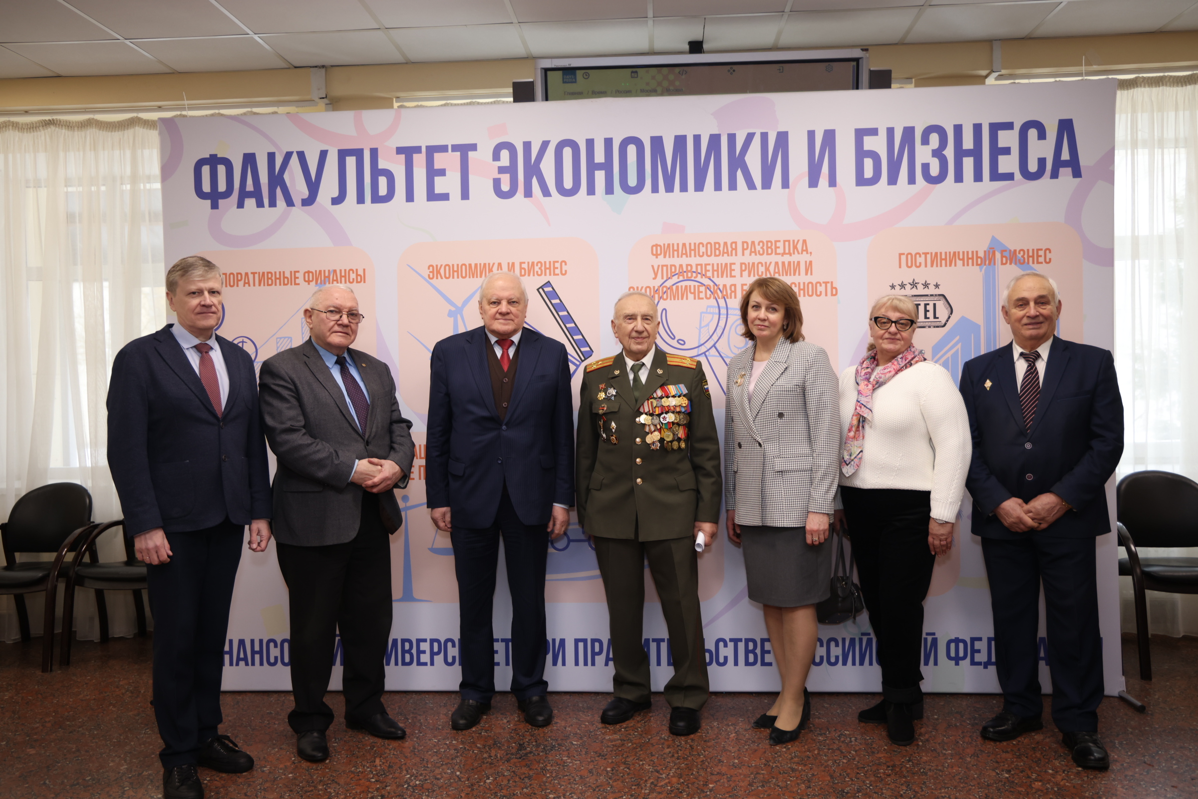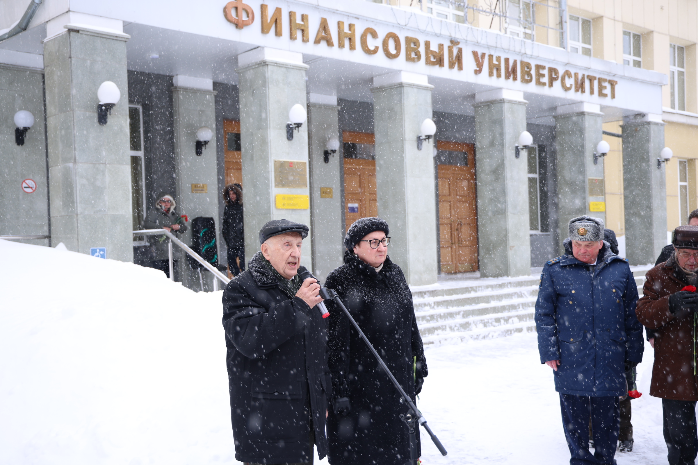 19 февраля 2026 года, в преддверии Дня защитника Отечества, по инициативе Совета ветеранов на территории учебного корпуса Финансового университета на ул. Кибальчича, д.1 состоялось торжественное мероприятие, в котором приняли участие студенты Факультета экономики и бизнеса, а также ветераны военной службы, в настоящее время продолжающие свою трудовую деятельность в Финуниверситете и работавшие в вузе ранее.