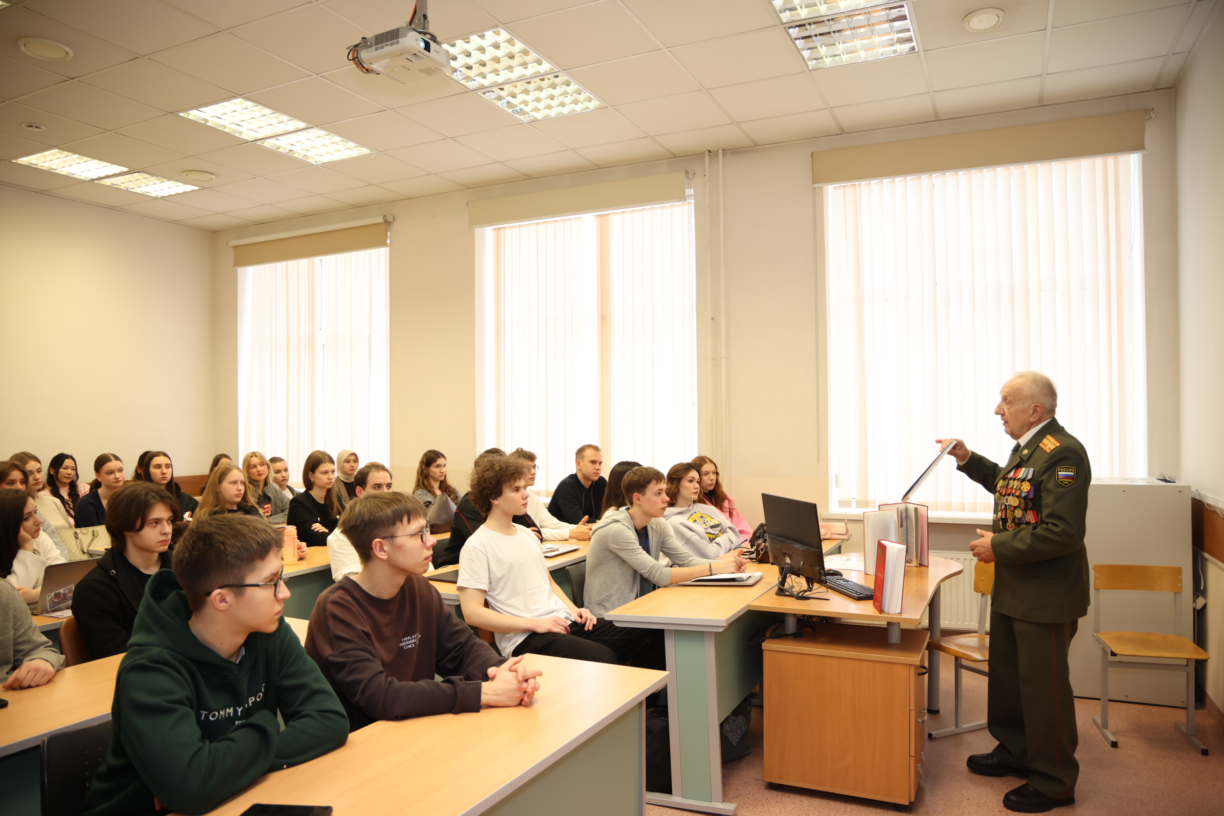 Также в рамках торжественного мероприятия прошла лекция руководителя Совета ветеранов, профессора, полковника в отставке Н.З. Кунца для студентов Факультета экономики и бизнеса на тему «Непобедимая и легендарная», в которой он ознакомил участников с историей возникновения этого знаменательного праздника, трансформацией его названия на протяжении столетия, особое внимание уделив рассказу о выдающихся подвигах наших воинов как в боевых столкновениях и войнах XX века, так и в ходе специальной военной операции.