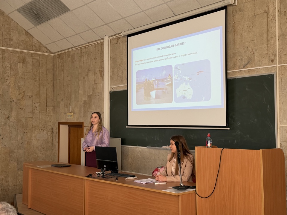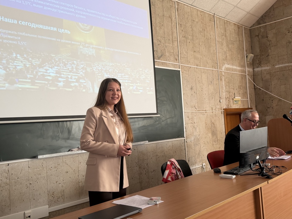 Перед будущими экономистами выступили Мария Игоревна Полякова, кандидат экономических наук, руководитель направления «Устойчивое развитие» ФАНУ «Восточный центр государственного планирования» (Востокгосплан) и Петрова Ирина Александровна, консультант по корпоративному управлению TopComprtence. Мария Игоревна и Ирина Александровна прочитали лекцию на тему: «Устойчивое развитие в страновом, региональном и городском управлении».