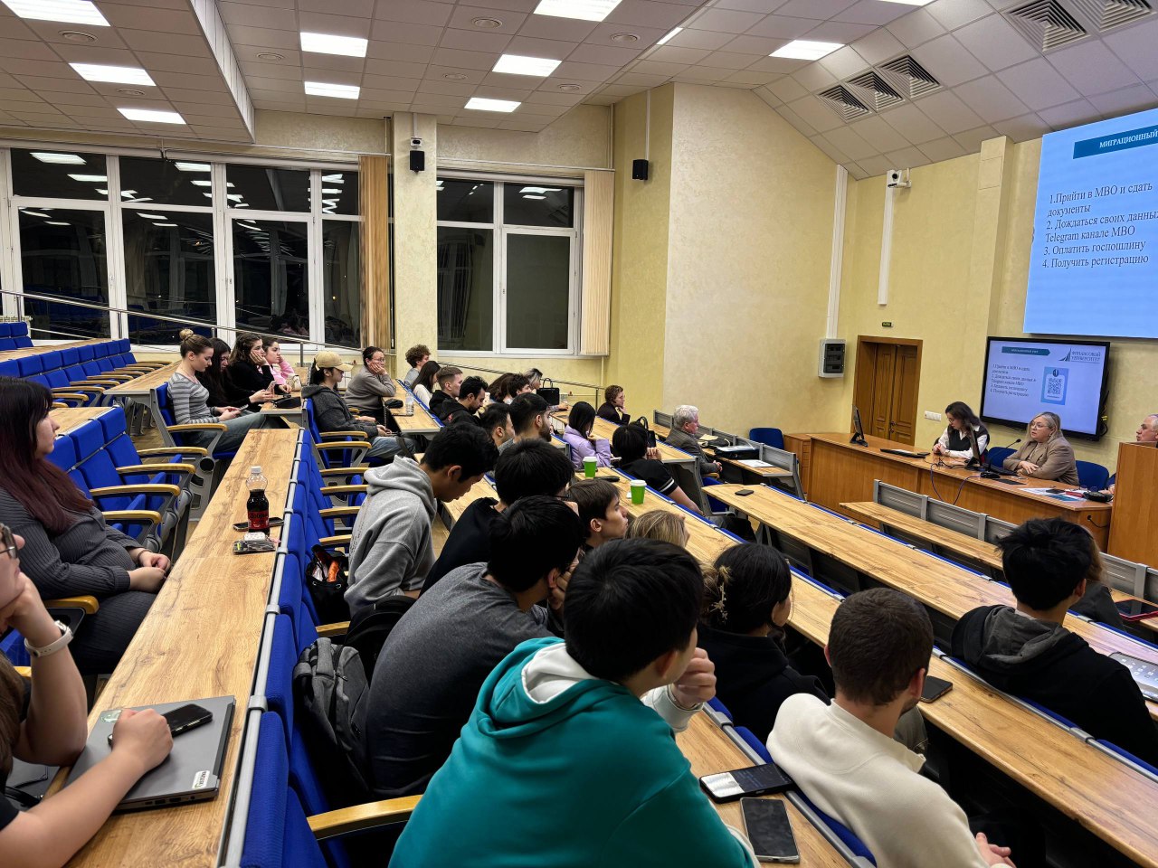 Демидова Дарья Альбертовна, начальник отдела по работе с иностранными обучающимися и преподавателями, ознакомила аудиторию с планом социально-культурных и адаптационных мероприятий, направленных на знакомство с культурой и комфортное пребывание в стране.