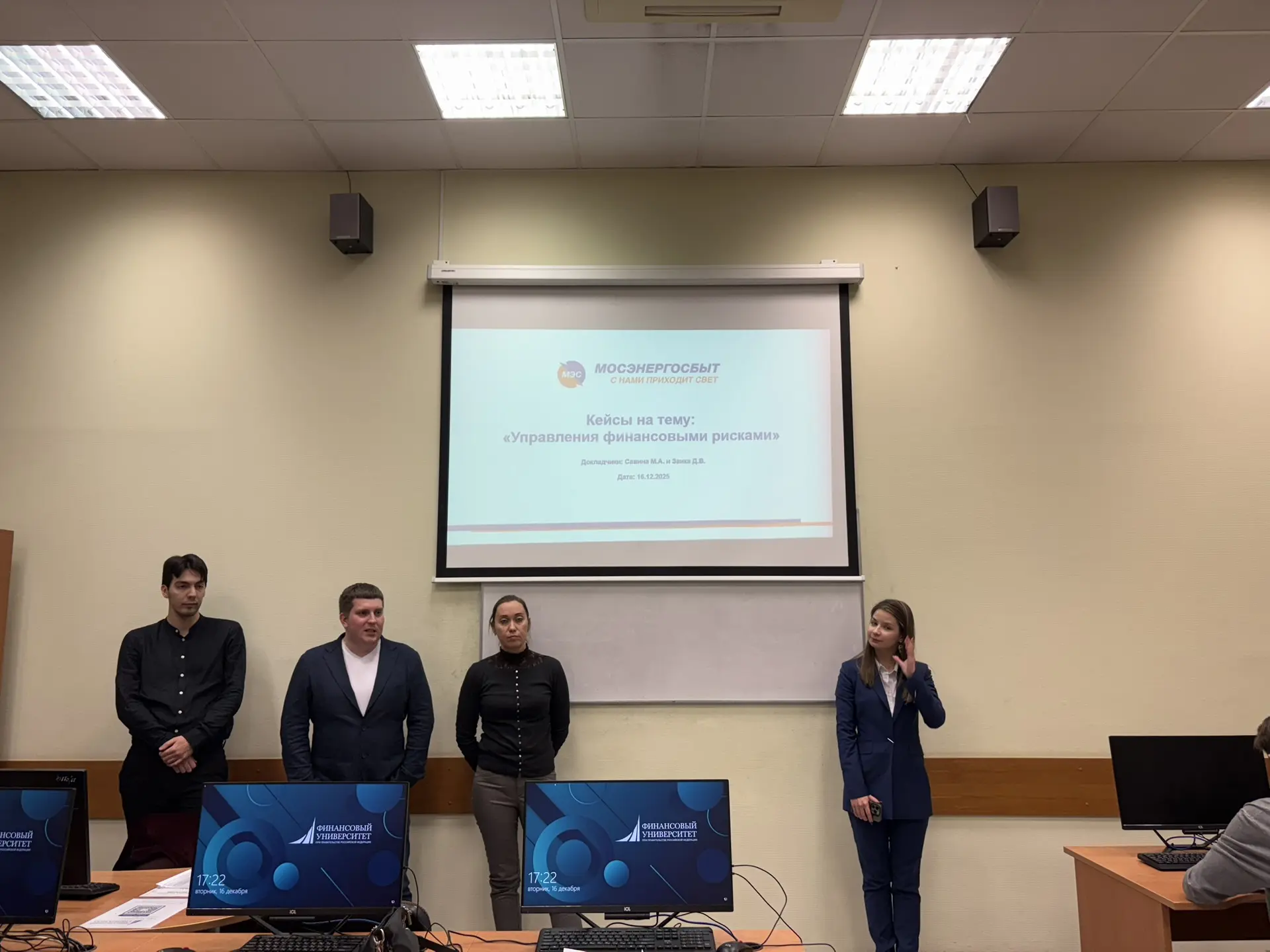 16 декабря 2025 г. на базе Финансового университета состоялся Мастер-класс и экономический хакатон для студентов 4 курса Факультета экономики и бизнеса (направление «Экономика», профиль «Экономика и финансы ТЭК»). Мероприятие провела начальник отдела внутреннего контроля и управления рисками АО «Мосэнергосбыт» Савина Мария Александровна.
