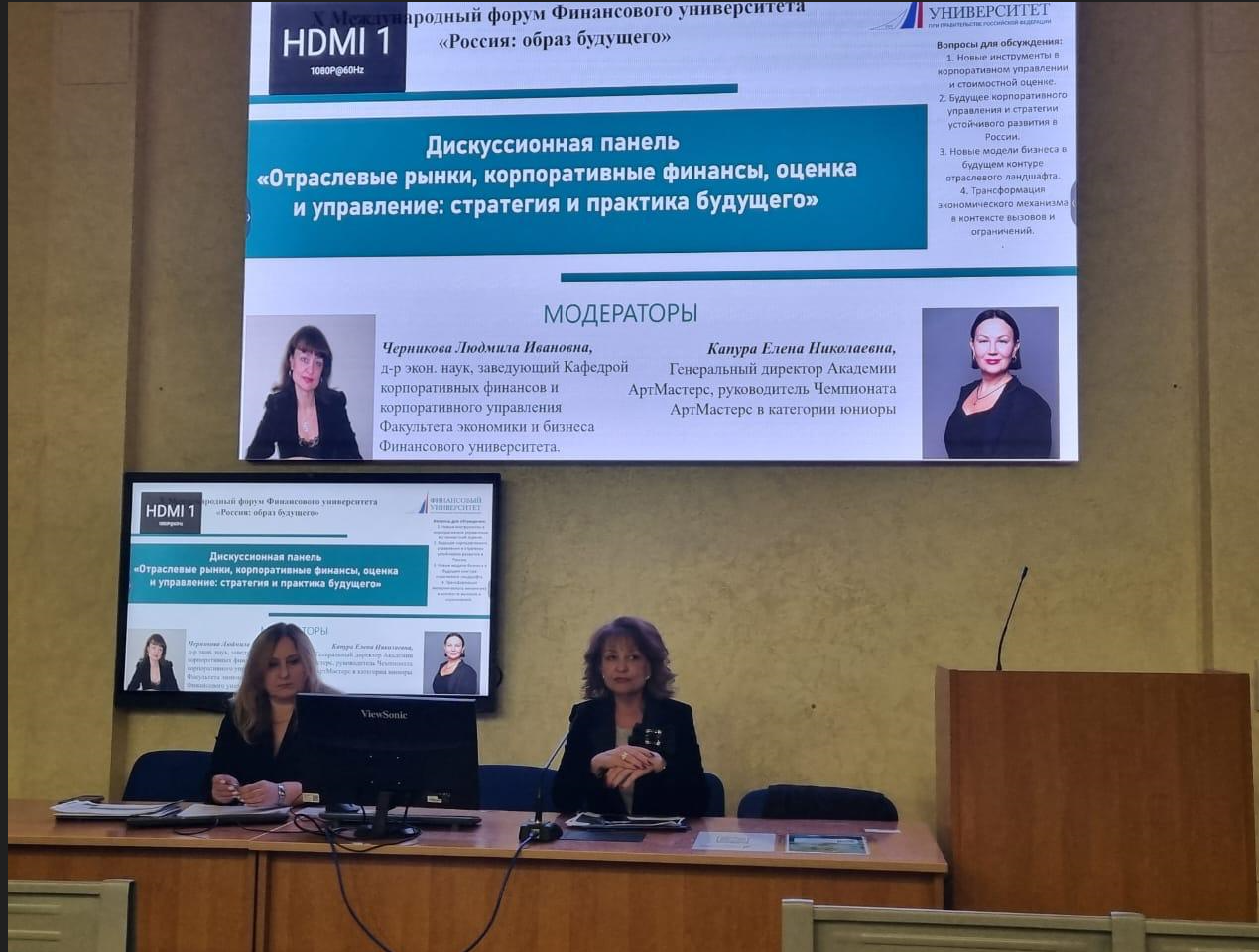 26 ноября 2025 года, в рамках X Международного форума Финансового университета «Россия: образ будущего», прошло совместное мероприятие Кафедры отраслевых рынков и Кафедры корпоративных финансов и корпоративного управления Факультета экономики и бизнеса - дискуссионная панель «Отраслевые рынки, корпоративные финансы, оценка и управление: стратегия и практика будущего». Модераторами выступили Черникова Людмила Ивановна, заведующий Кафедрой корпоративных финансов и корпоративного управления Факультета экономики и бизнеса Финансового университета, и Капура Елена Николаевна, генеральный директор Академии Артмастерс, руководитель Чемпионата АртМастерс в категории юниоры.