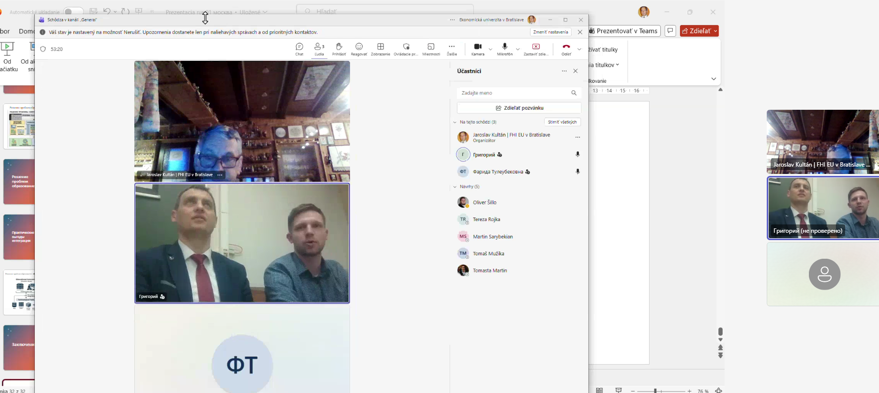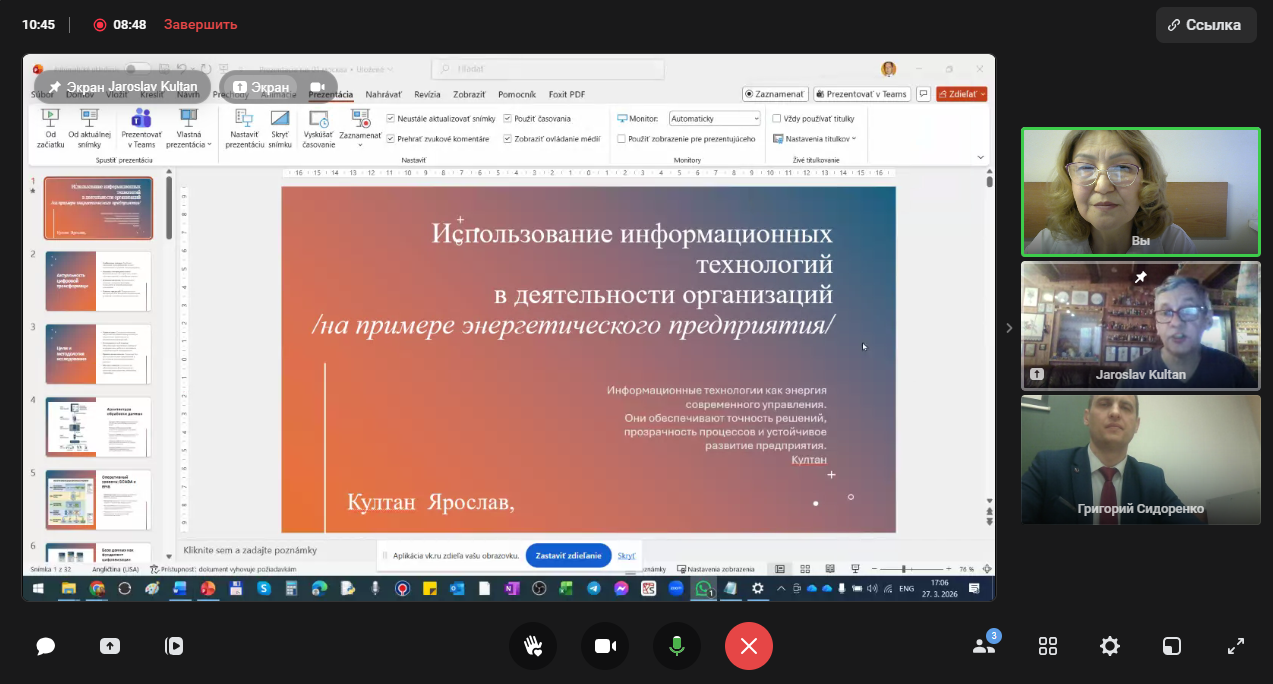 В целях реализации программы международной академической мобильности работников 27 марта 2026 г. в рамках программы «Приглашенный профессор» было проведено лекционное занятие в дистанционной форме доктора философских наук в области экономики и технических наук, ассоциированного профессора Экономического университета в Братиславе (Республика Словакия) Култана Ярослава.