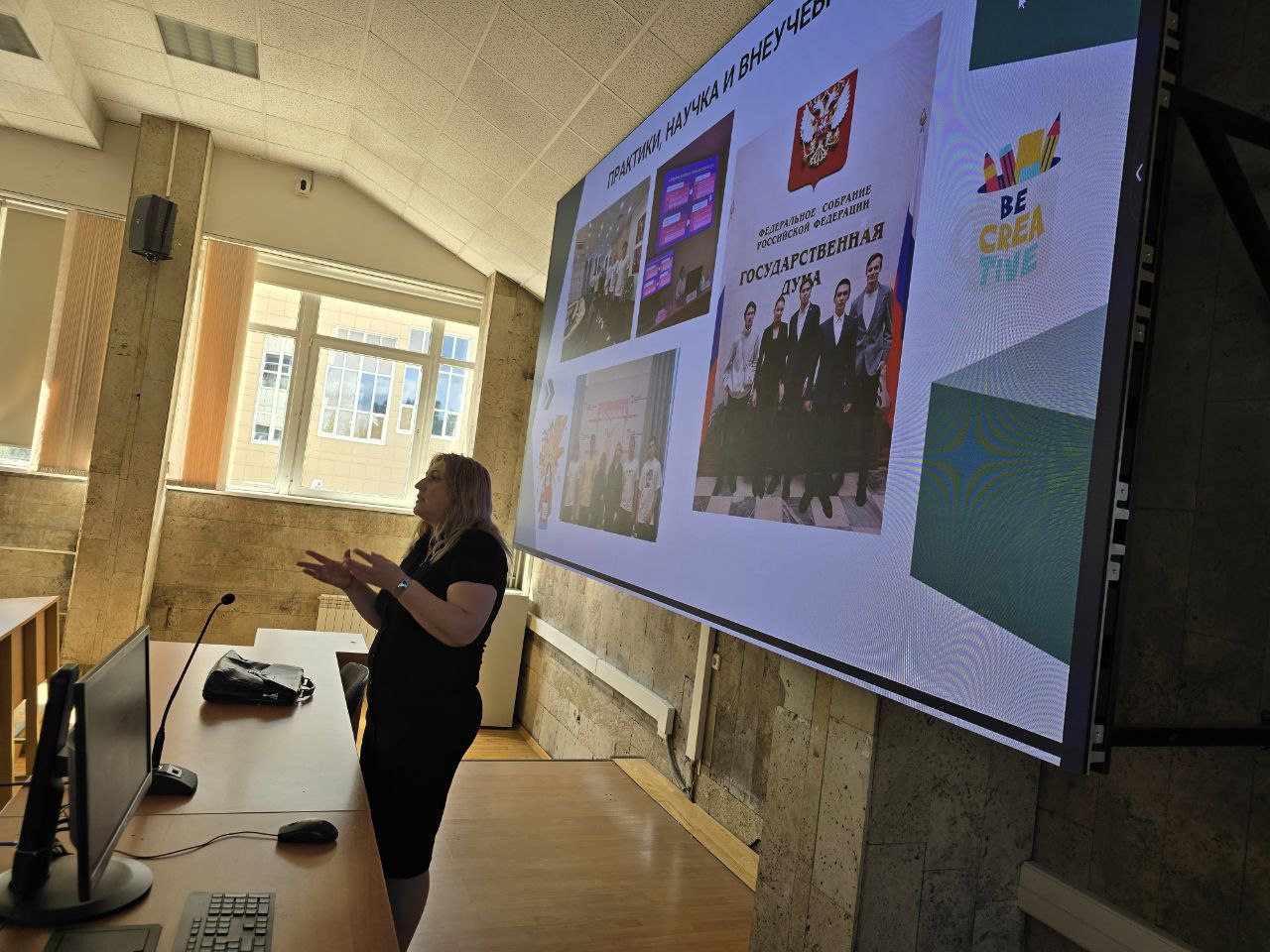 Кроме того, студенты получили информацию о возможностях участия в молодежных научных обществах, профессиональных студенческих организациях и исследовательских проектах кафедры. Было отмечено, что активная вовлеченность в научную и общественную жизнь факультета не только способствует развитию лидерских и исследовательских навыков, но и позволяет сформировать профессиональные контакты, необходимые для успешной карьеры в экономике и бизнесе.