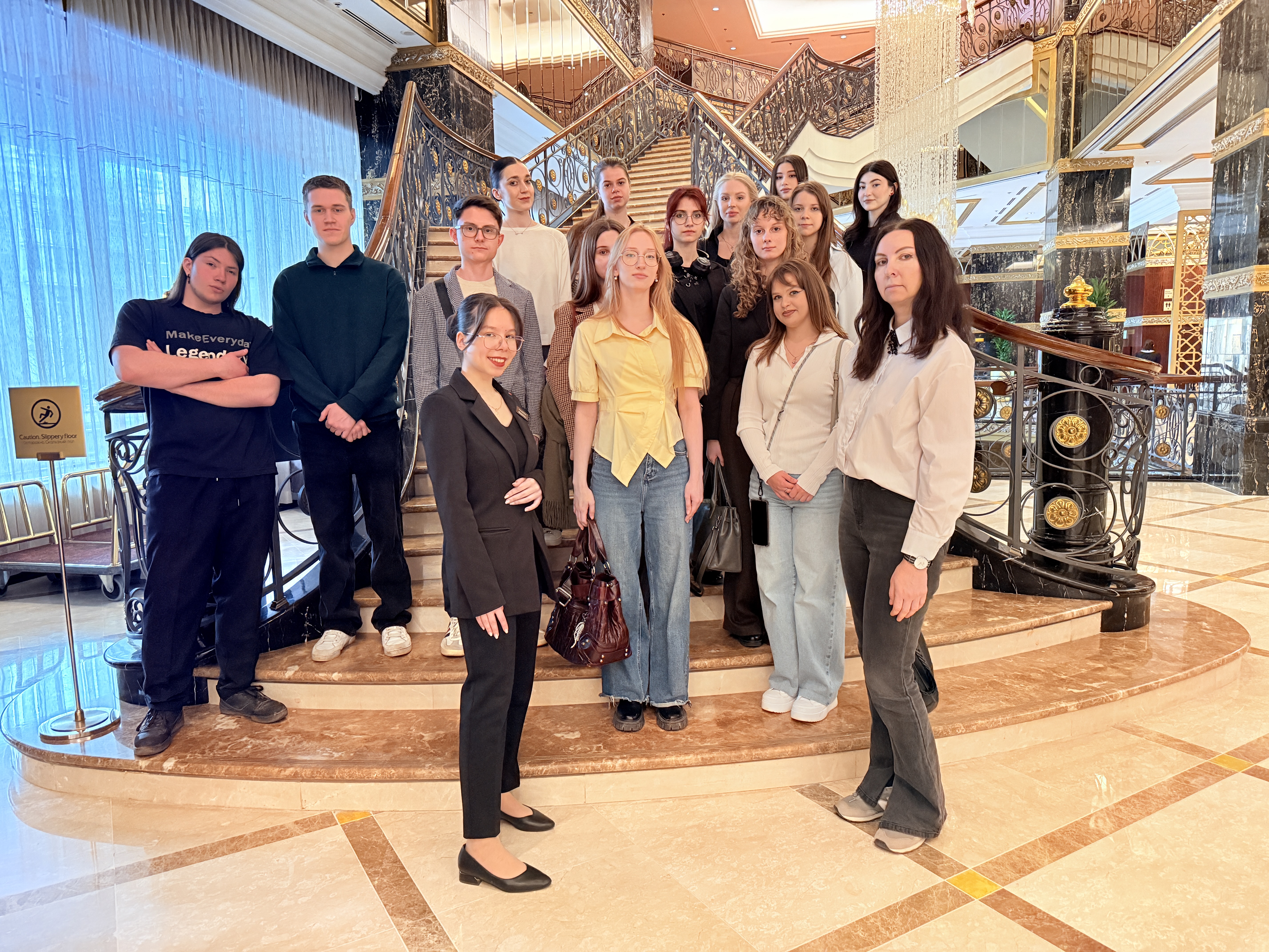 01 апреля 2026 года студенты 3 курса направления подготовки "Гостиничное дело" совместно с доцентом Кафедра туризма и гостиничное дело Аникиной Людмилы Александровны посетили с экскурсией отель "ЛОТТЕ ОТЕЛЬ МОСКВА". Мероприятие провела Елизавета Чан - ассистент тренинг-менеджера. Студенты посетили общественные зоны, рестораны, два шикарных гостиничных номера, услышали реальные кейсы, истории про нестандартные ситуации и как персонал отеля красиво их решал. С отелем "ЛОТТЕ ОТЕЛЬ МОСКВА" имеется долгосрочный договор об организации практической подготовки, поэтому многие учащиеся могут продолжить знакомство с отелем уже в рамках практики.