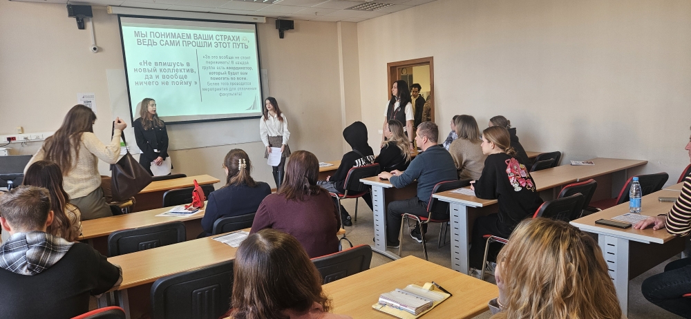 Школьники и их родители активно участвовали в мастер-классе, задавали вопросы об особенностях реализуемых кафедрой программ и правилах поступления в вуз. Первокурсницы поделились своими впечатлениями от обучения и передали позитивные эмоции аудитории. Мероприятие прошло креативно и в очень доброжелательной атмосфере.