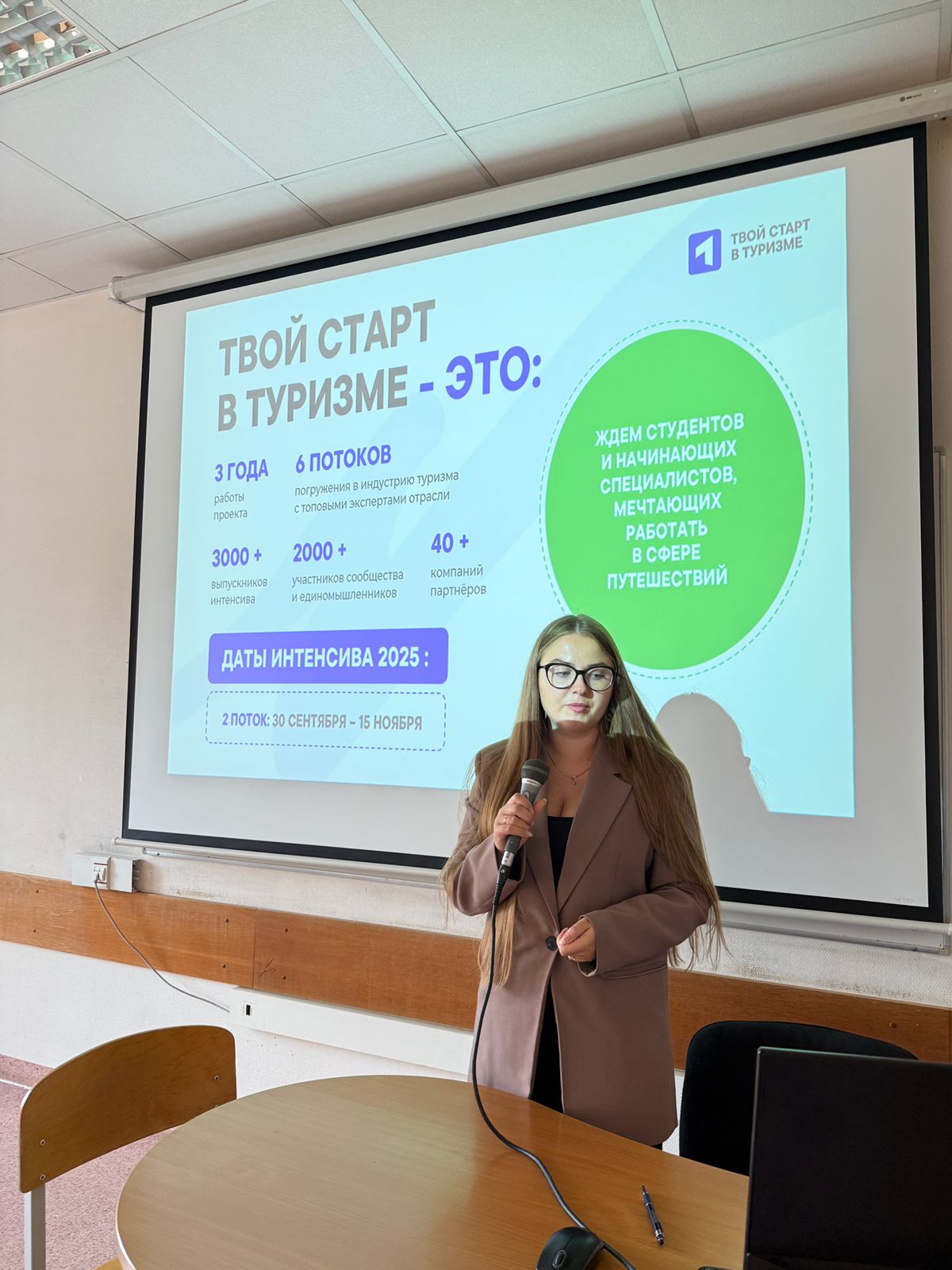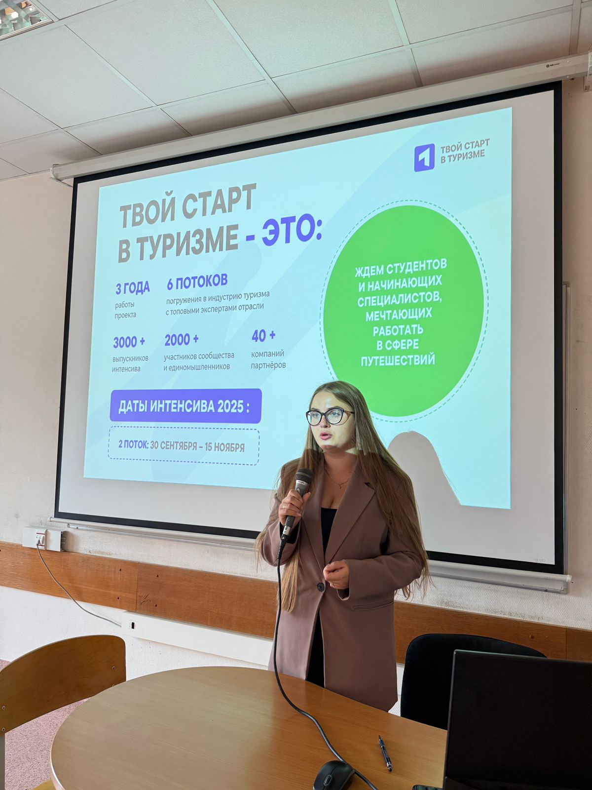 15 сентября 2025 года состоялся мастер-класс от Проектного офиса по развитию туризма и гостеприимства города Москвы. Руководитель проекта Березнева Анастасия рассказала, как запустить свою карьеру в туризме вместе с проектом «Твой старт в туризме!».