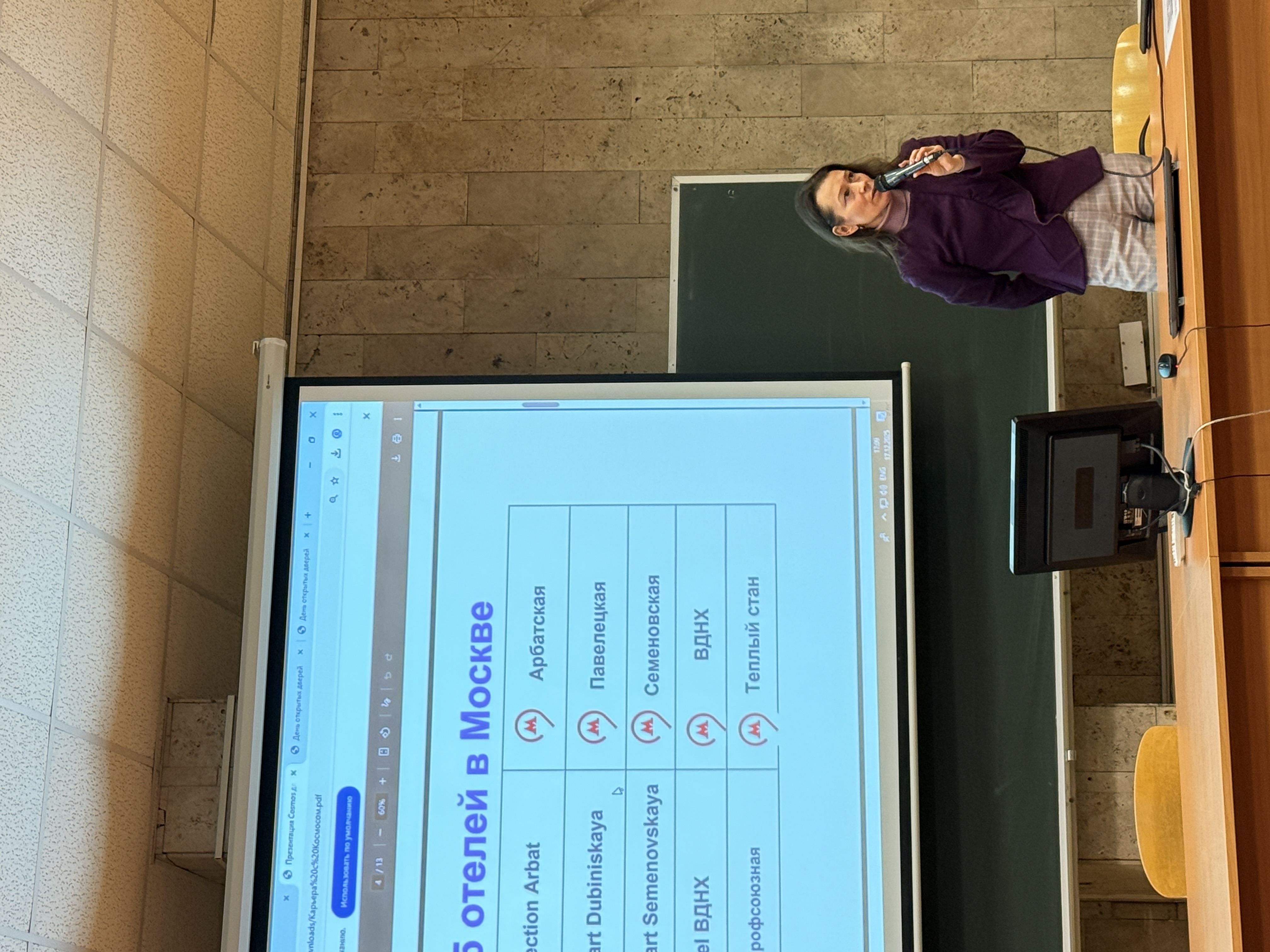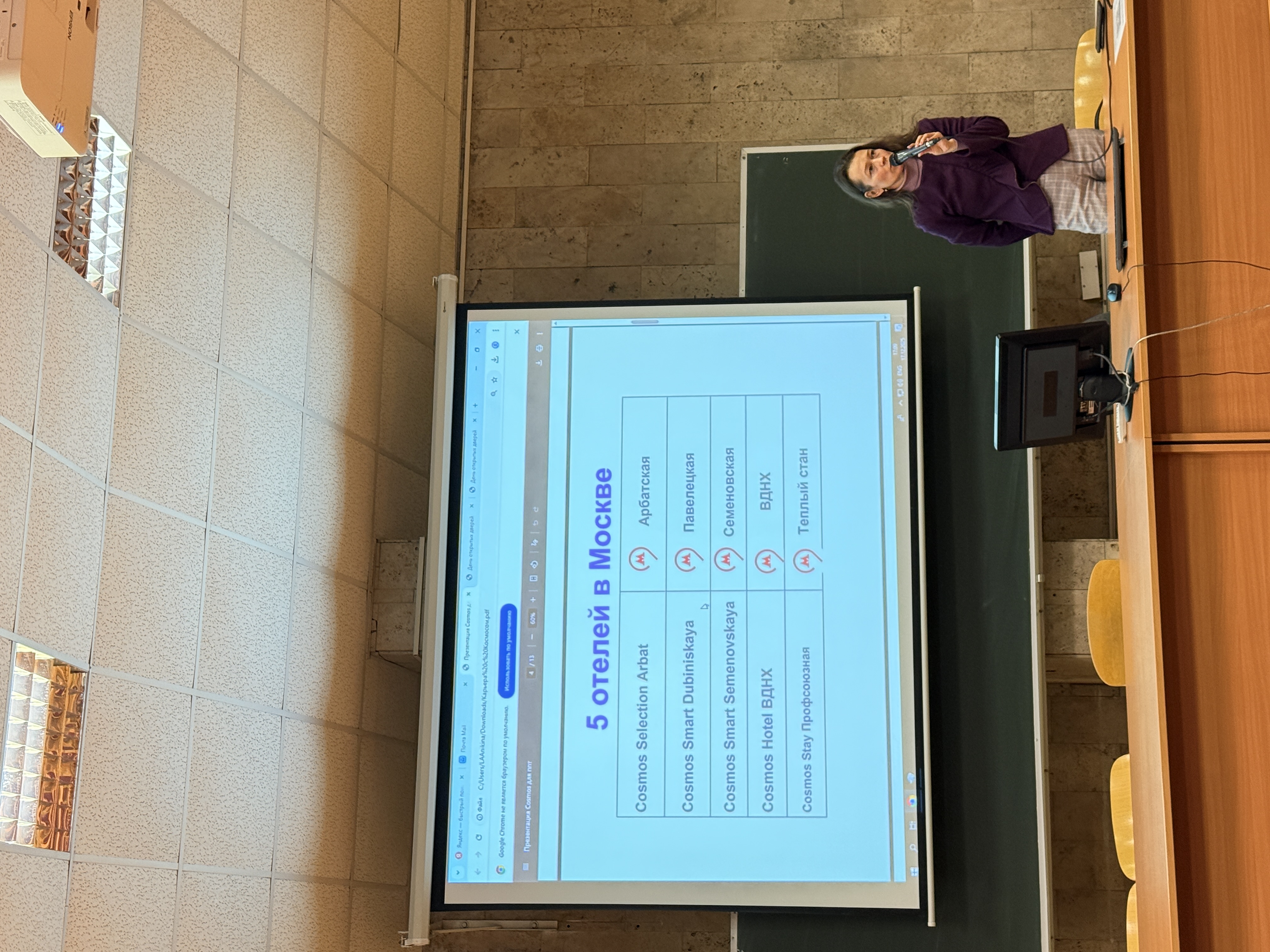 17 декабря 2025 года состоялась бизнес встреча по взаимодействию и партнерству Кафедры туризма и гостиничного бизнеса Факультета экономики и бизнеса с УК «Космос» и, в частности, с Академией гостеприимства «Космос». Перед студентами выступила Гришина Мария Сергеевна, руководитель по работе с федеральными проектами Академии гостеприимства «Космос». Она рассказала о возможностях стажировок и практики, а также будущего трудоустройства обучающихся. В ведении управляющей компании «Космос» находятся 5 объектов гостиниц в г. Москве (Арбатская, Павелецкая, Семеновская, ВДНХ, Теплый стан) и еще множество объектов по России. И даже скоро один из объектов откроется на Кубе. Гришина Мария выступила перед ребятами 3 и 4 курсов.