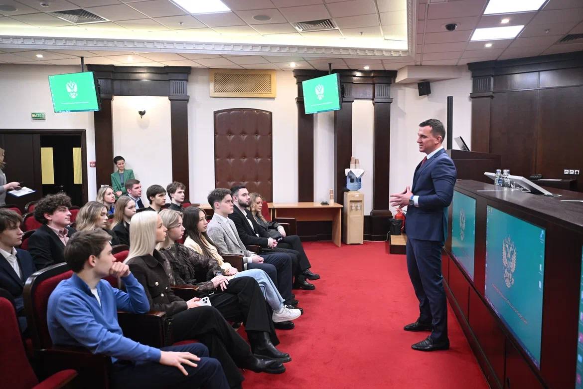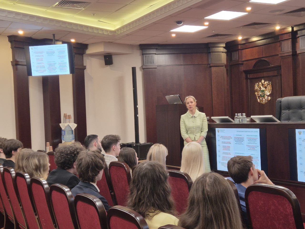 В рамках профориентационной встречи своим опытом и знаниями о государственной службе с обучающимися поделились Роман Игоревич Матусар, заместитель директора департамента программно-целевого планирования и проектного управления Минфина России, Елена Александровна Громова, директор Департамента информационных технологий в сфере управления государственными и муниципальными финансами и информационного обеспечения бюджетного процесса и Татьяна Павловна Демидова, директор Департамента бюджетной политики в сфере контрактной системы.