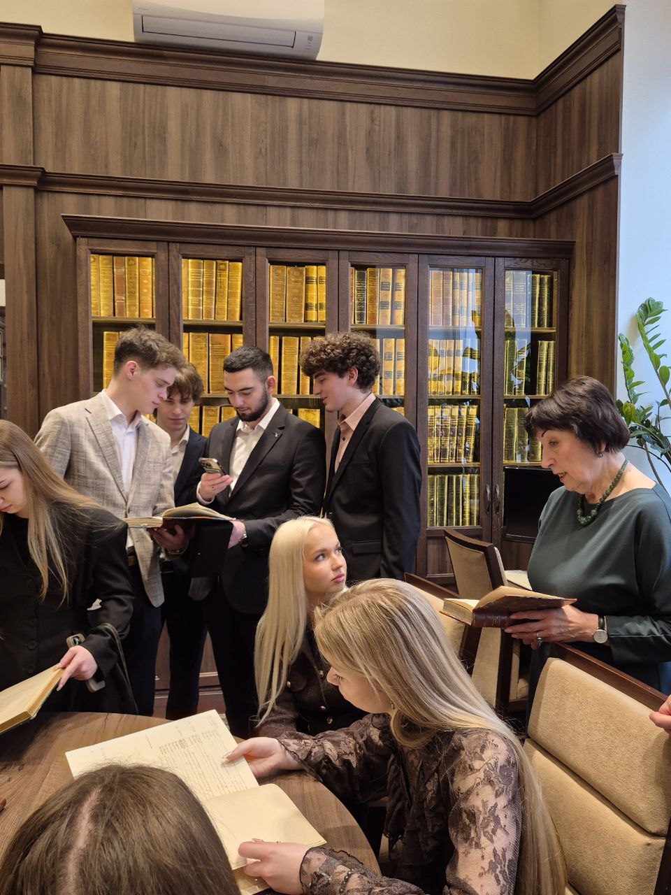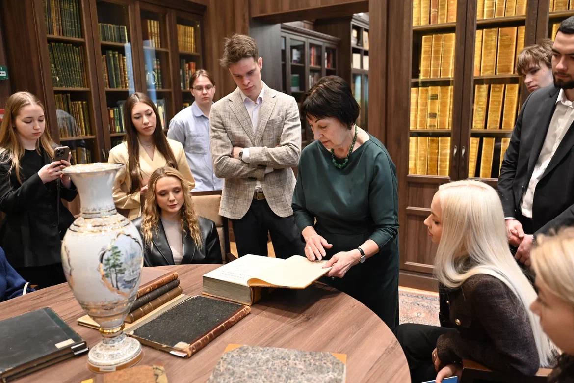 После завершения профориентационной встречи студенты посетили Музей Минфина России, где узнали о ключевых вехах развития финансов в России, а также Научную библиотеку Минфина России, где обучающимся была представлена возможность ознакомиться с архивными изданиями.