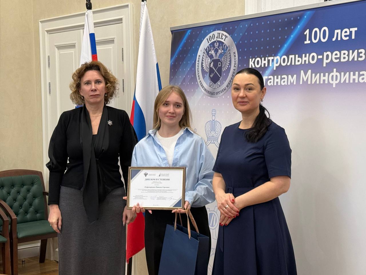 Также благодарственными письмами были отмечены Федченко Елена Алексеевна, заместитель заведующего кафедрой «Финансовый контроль и казначейское дело» Финансового факультета, а также Мутагирова Диляра Рамилевна, ассистент кафедры «Финансовый контроль и казначейское дело» Финансового факультета за высокий уровень подготовки студентов-участников конкурса эссе «Шаг в профессию».