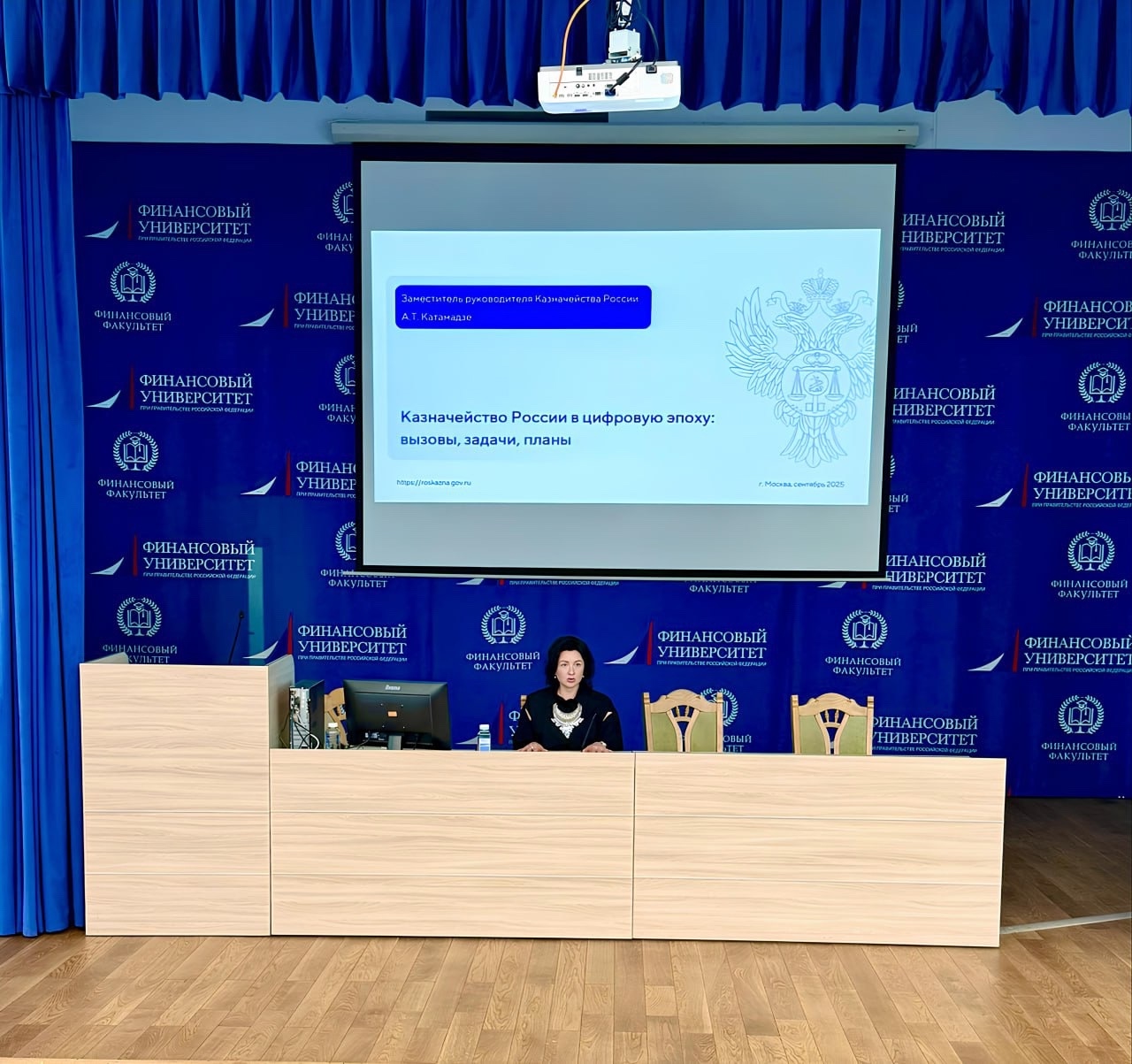 В рамках лекции студентам было рассказано о роли Казначейства России в цифровую эпоху, основах федерального законодательства в области бюджета и закупок, системе казначейских платежей.