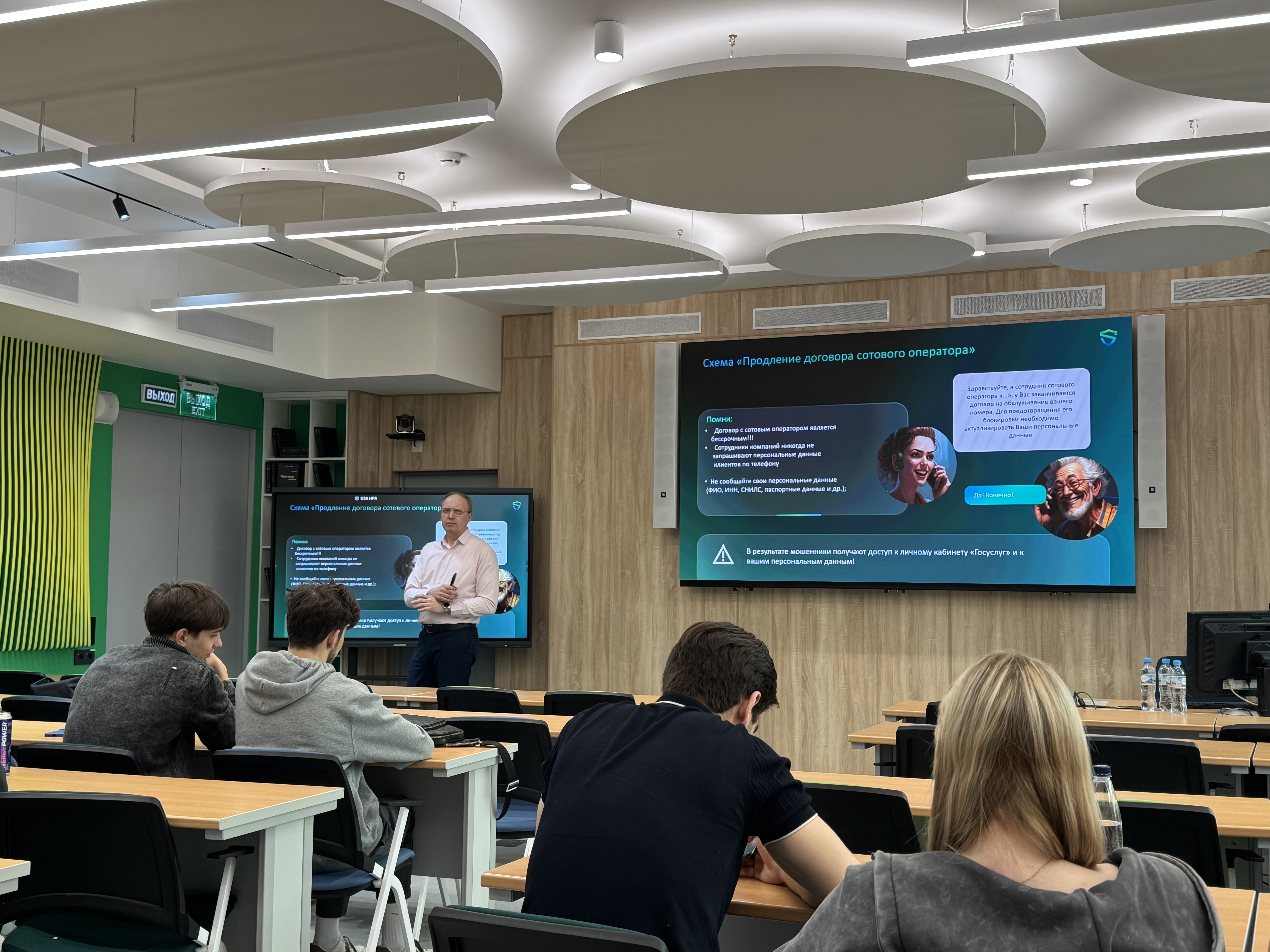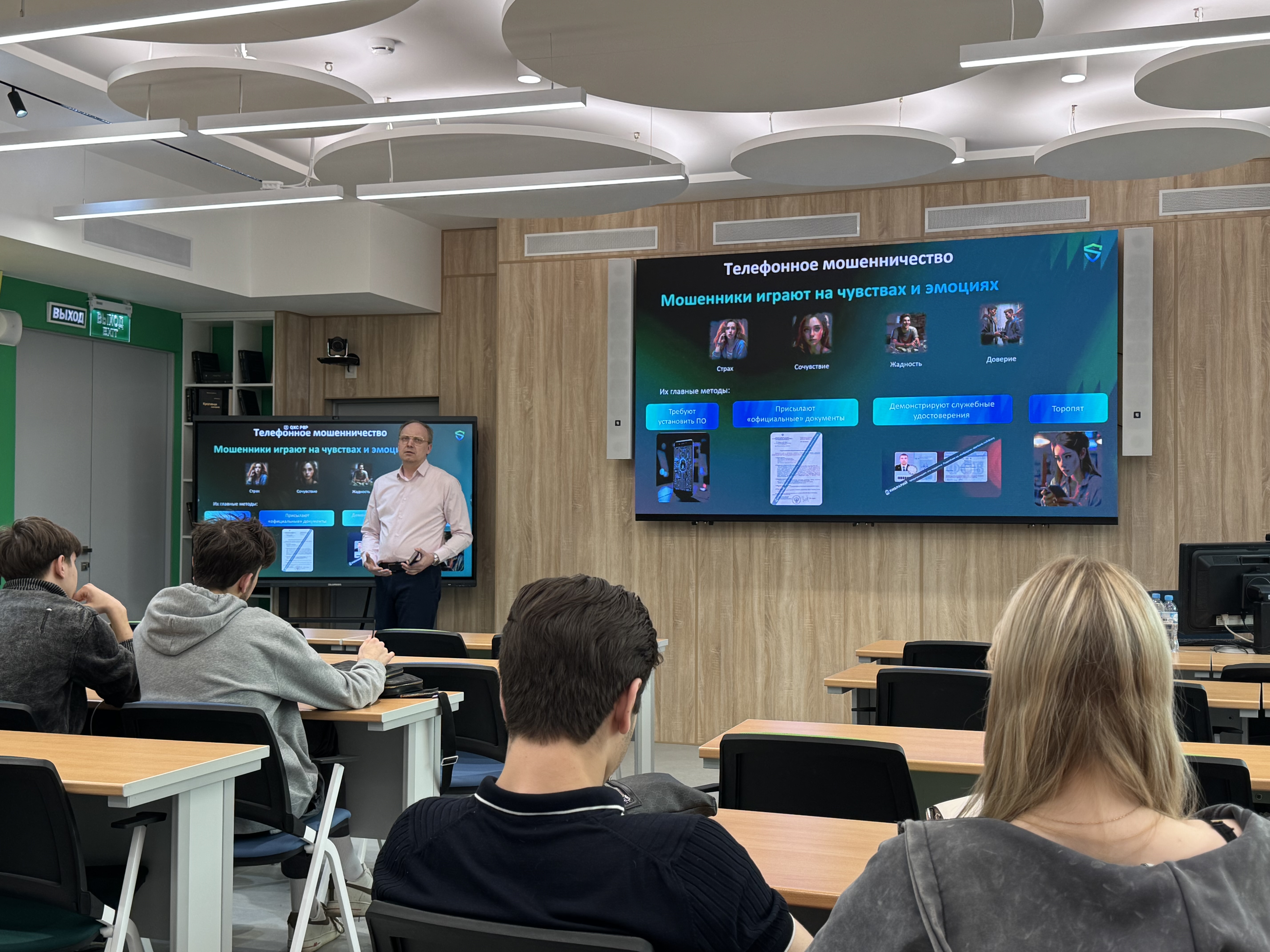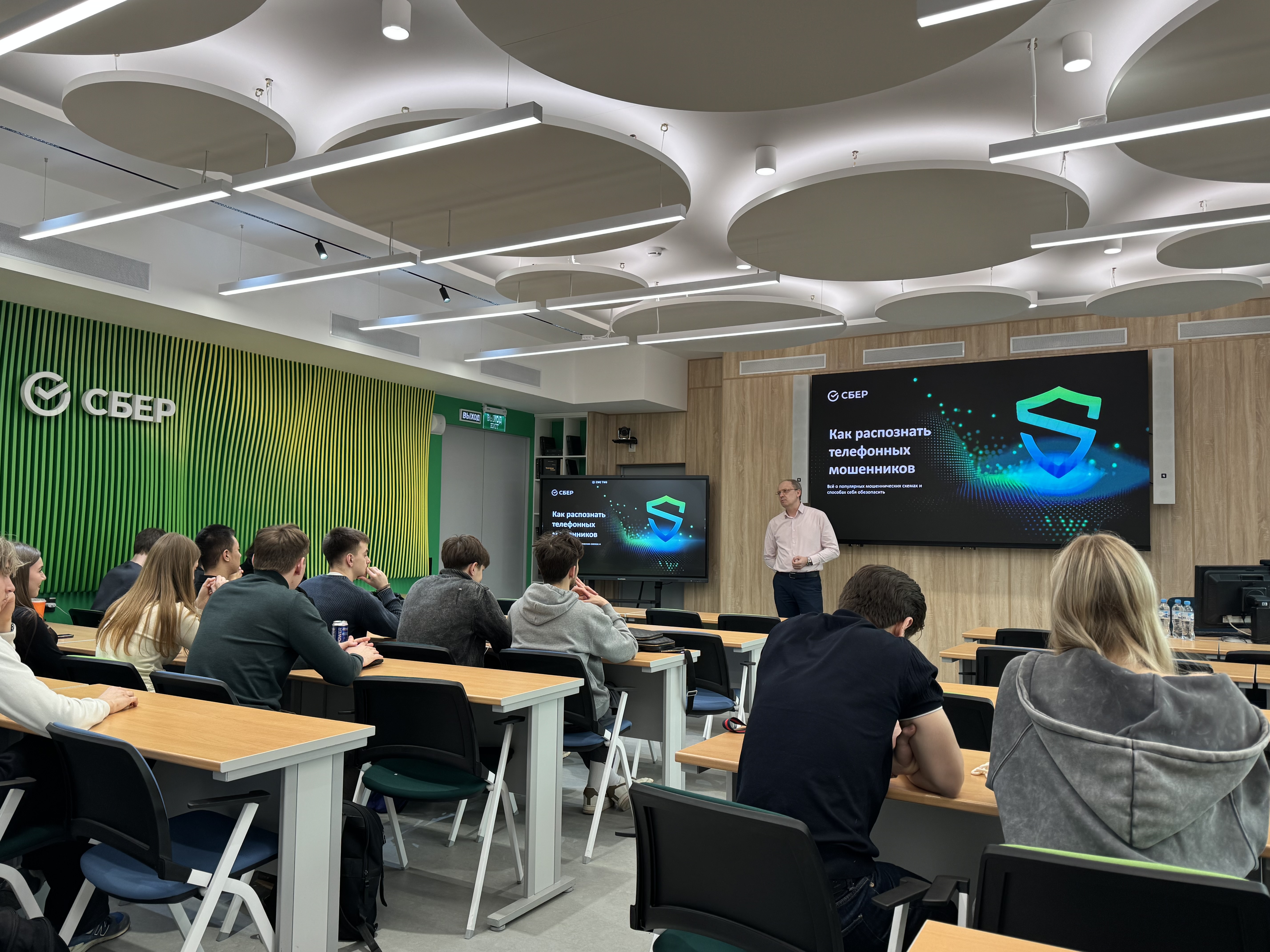 В рамках расширения сотрудничества со стратегическими партнерами 18 марта и 01 апреля 2026 г. Силин Александр Валентинович – исполнительный директор Управления безопасности Московского банка ПАО "Сбербанк" провел лекцию для студентов 1 курса профиля «Государственный финансовый контроль и цифровое казначейство» Финансового факультета на тему: «Как распознать телефонных мошенников».