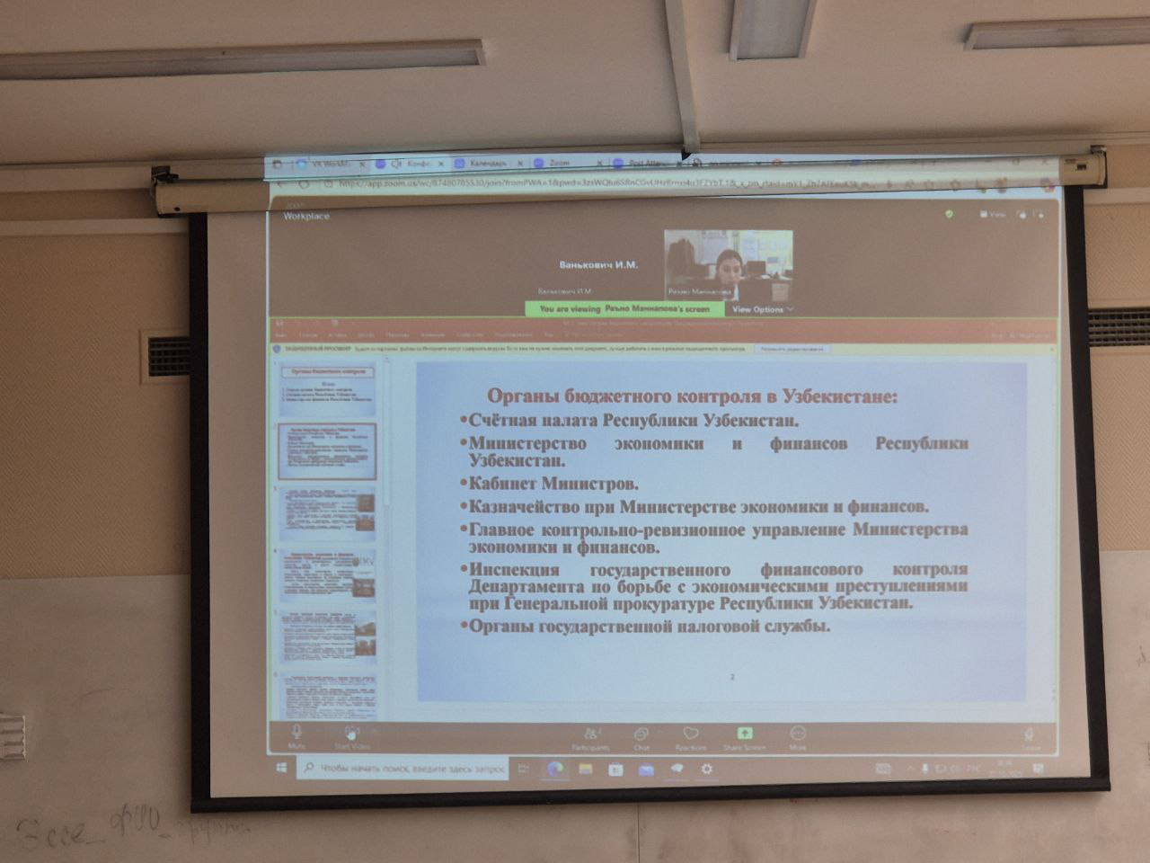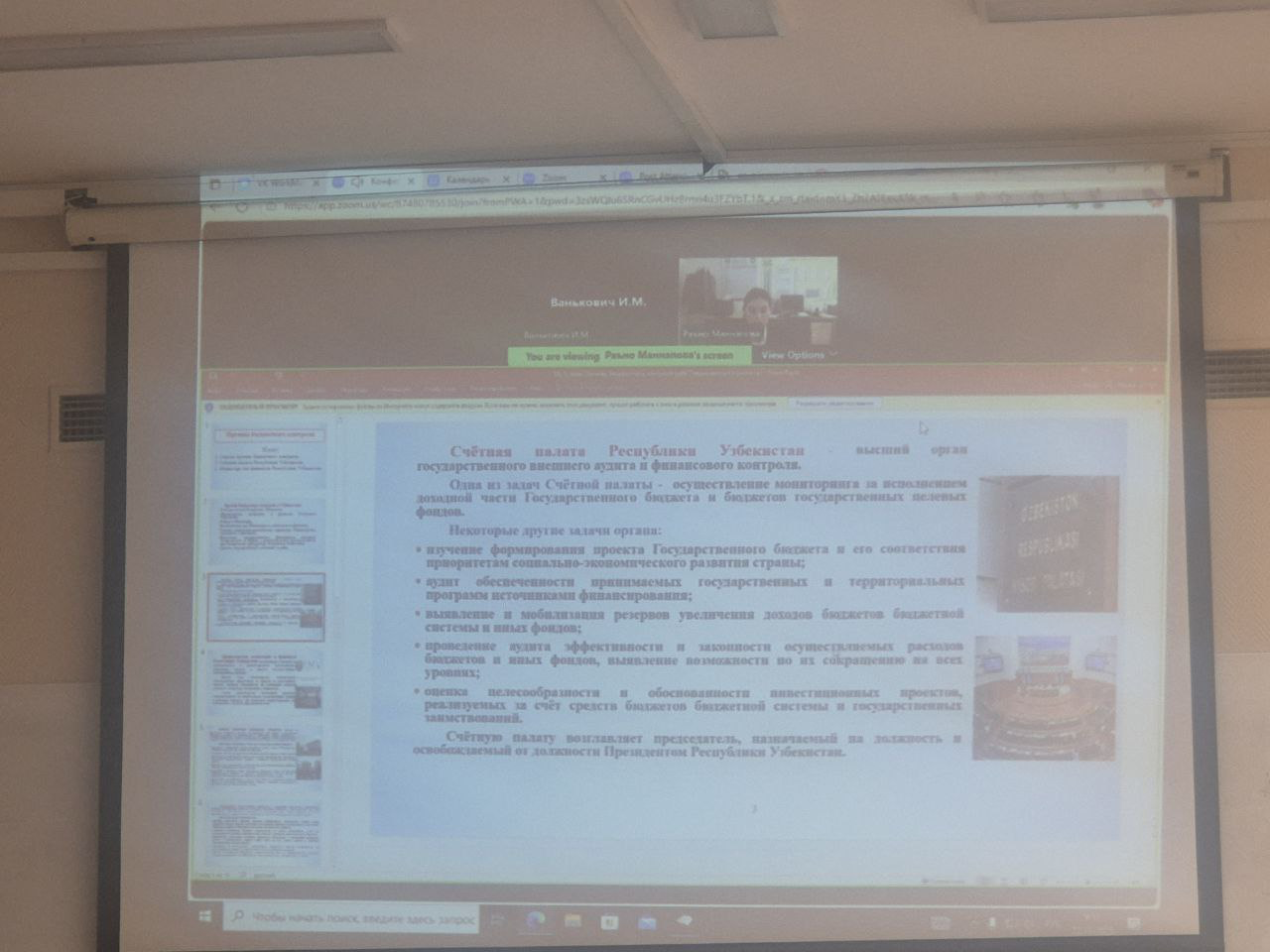 В рамках программы «Приглашенный профессор» 22 октября 2025 г. доцент кафедры «Бюджетный учет и казначейство» Ташкентского государственного экономического университета Рано Аброровна Маннапова, (г. Ташкент) провела лекцию студентам-выпускникам 4 курса профиля «Государственный финансовый контроль» Финансового университета при Правительстве Российской Федерации (г. Москва) на тему: «Организация бюджетного контроля в Республике Узбекистан». Лектор затронула вопросы формирования системы органов бюджетного контроля, роль Счетной палаты в системе государственного управления и обозначила направления дальнейшего развития бюджетного контроля в Республике Узбекистан.