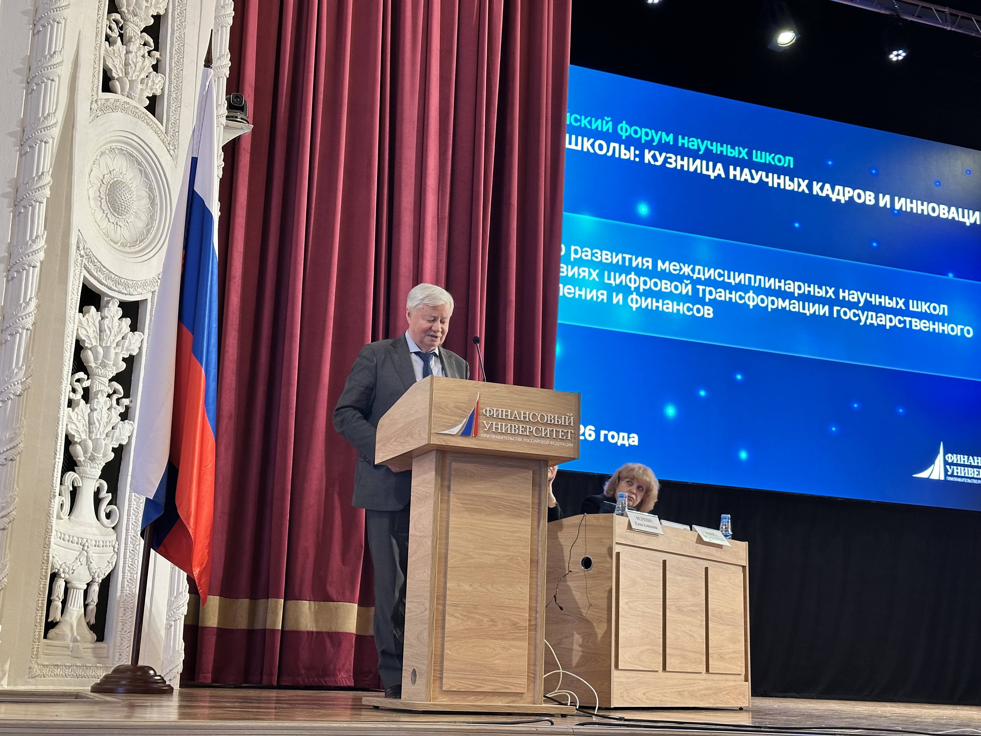 17 февраля 2026 года в стенах Финансового университета при Правительстве Российской Федерации состоялась междисциплинарная секция «Вектор развития междисциплинарных научных школ в условиях цифровой трансформации государственного управления и финансов», организованная Кафедрой «Финансовый контроль и казначейское дело» Финансового факультета и Кафедрой «Государственное и муниципальное управление» Факультета «Высшая школа управления», в рамках Всероссийского форума научных школ «Научные школы: кузница научных кадров и инноваций», посвященного актуальным вопросам развития современных научных школ в вузе, а также привлечения молодых талантов в науку.